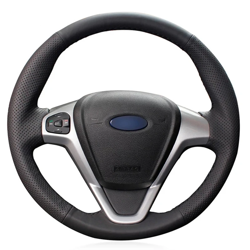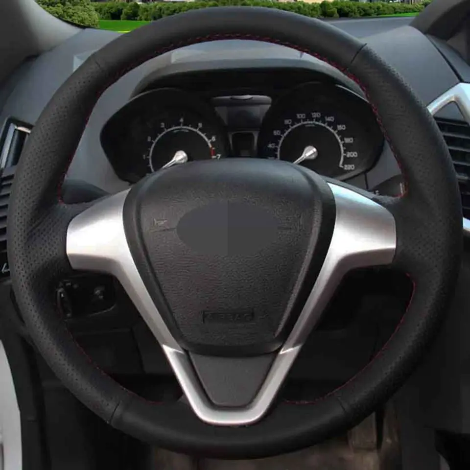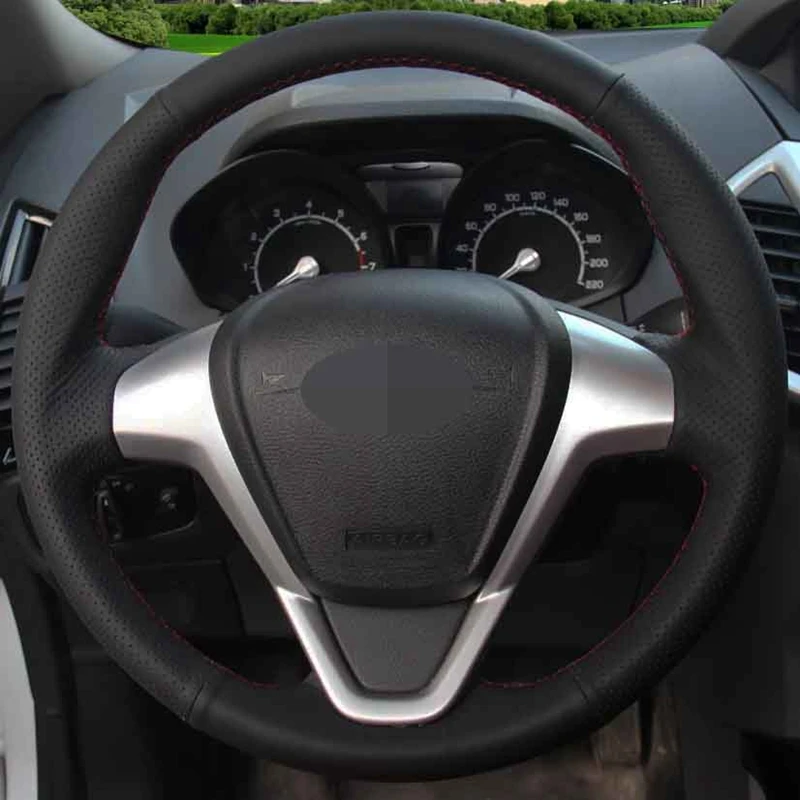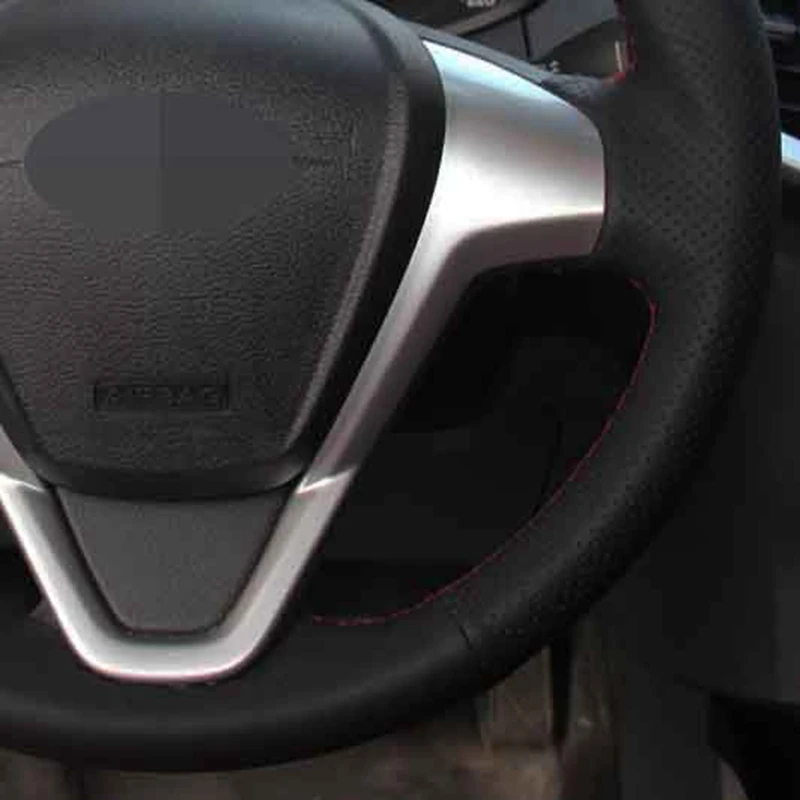 Ручная прострочка Чехлы рулевого колеса автомобиля DIY мягкой натуральной кожи черного цвета для форд фиеста 2008-2013 Ecosport 2013-2016