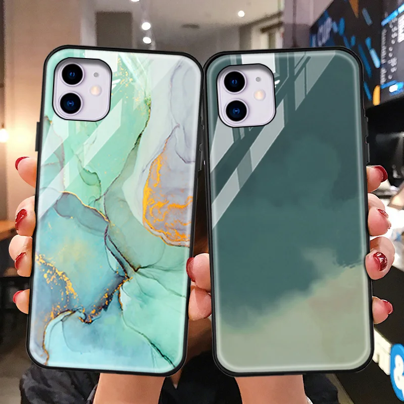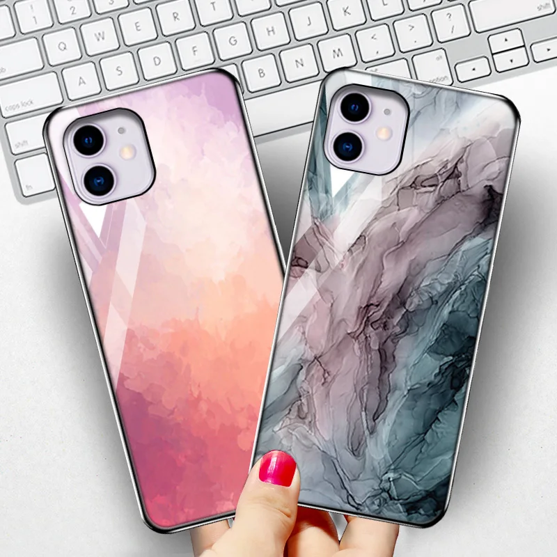 Чехол Marble i Phone 11 для iPhone 12 Pro Max, чехол из закаленного стекла для iPhone 11 Pro Max Bumper Xs Max Xr Xs X 7 8 Plus 6 6s SE 2