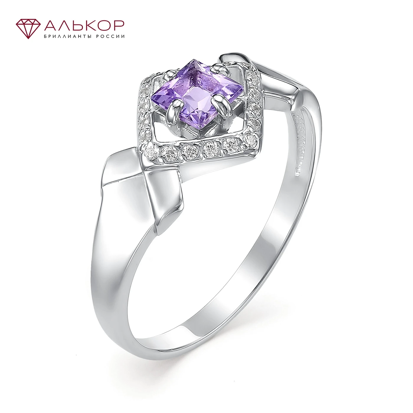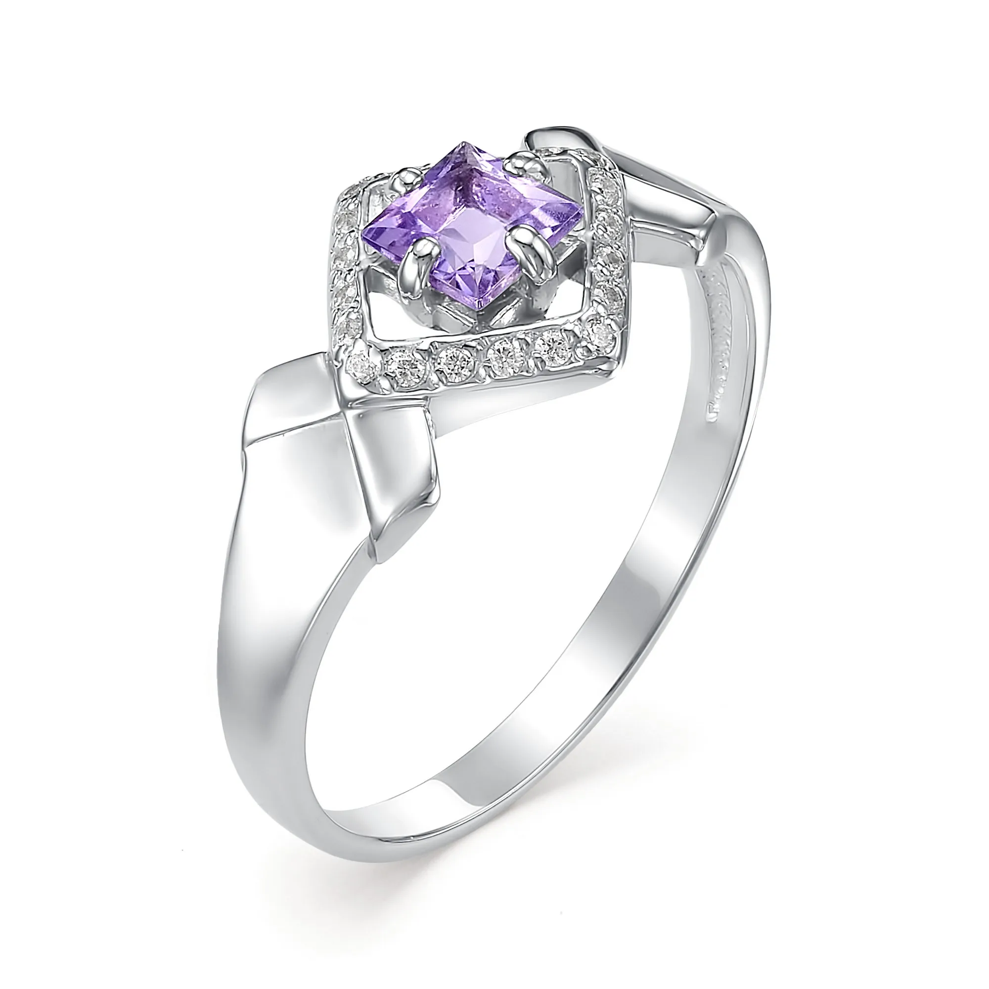 Кольцо тренд 2021 из серебра 925 с покрытием из родия, вставка: аметист. Бесплатная доставка с ювелирной фабрики в России