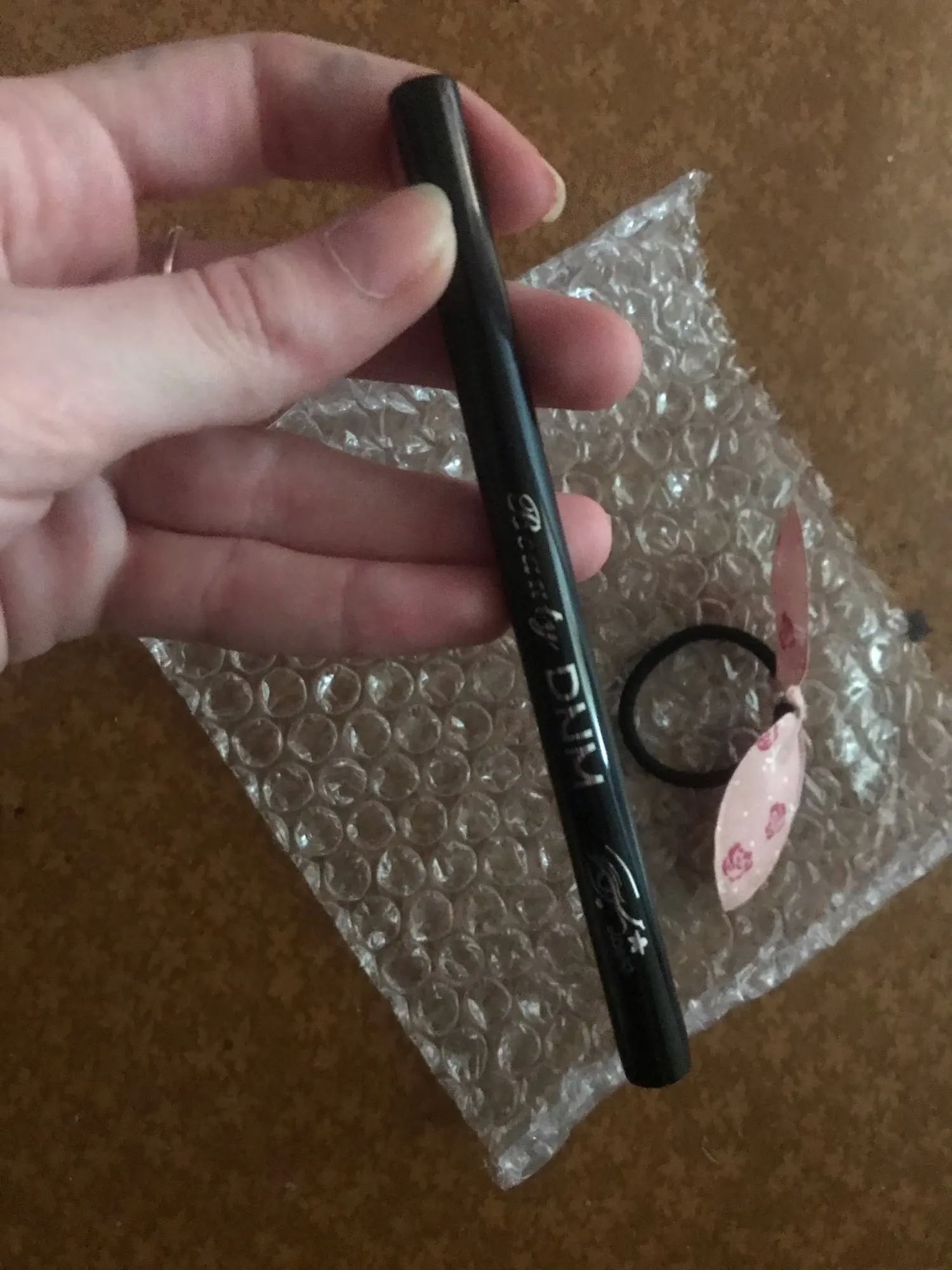 Подводка достаточно яркая (заказывала белую), без проплешин и продавец положил резиночку для волос в подарок