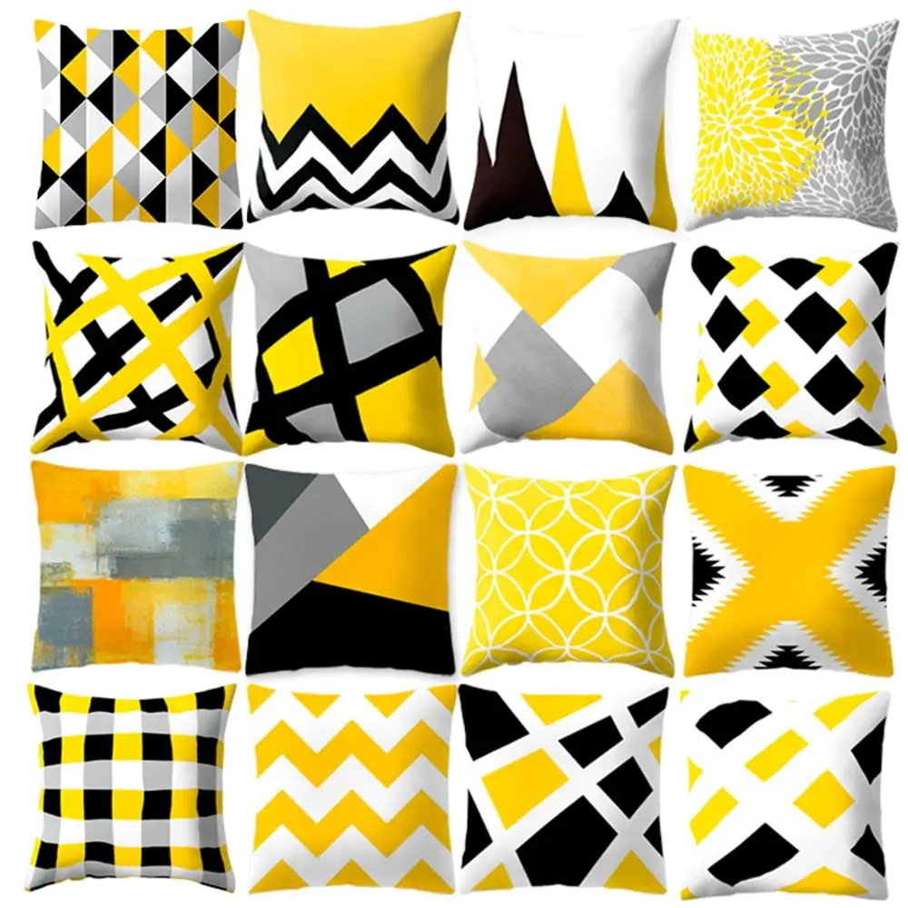 Желтый геометрический чехол для дивана, декоративные подушки, навол...