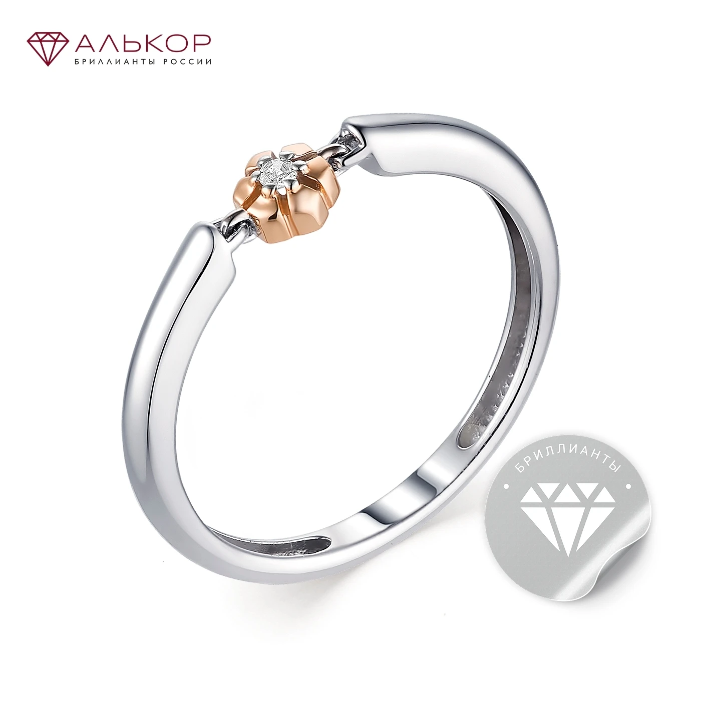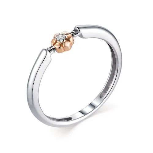 Кольцо тренд 2021 из родированного серебра и золота c бриллиантом А...