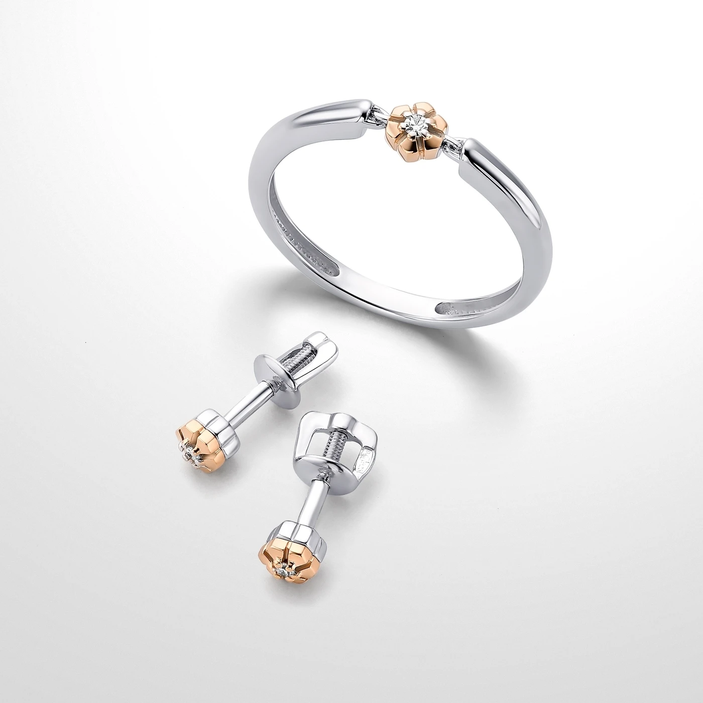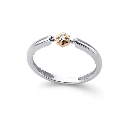 Помолвочное кольцо тренд 2021 из серебра 925 и золота 585 пробы, пр...
