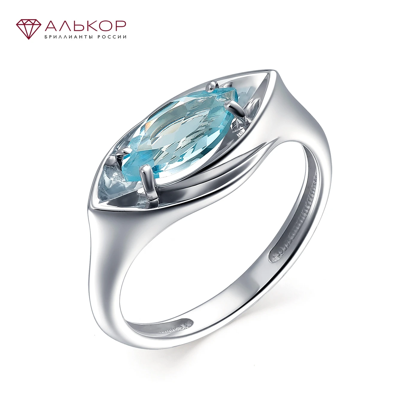 Кольцо тренд 2021 из серебра 925 с покрытием из родия, вставка: топаз sky blue. Бесплатная доставка с ювелирной фабрики в России