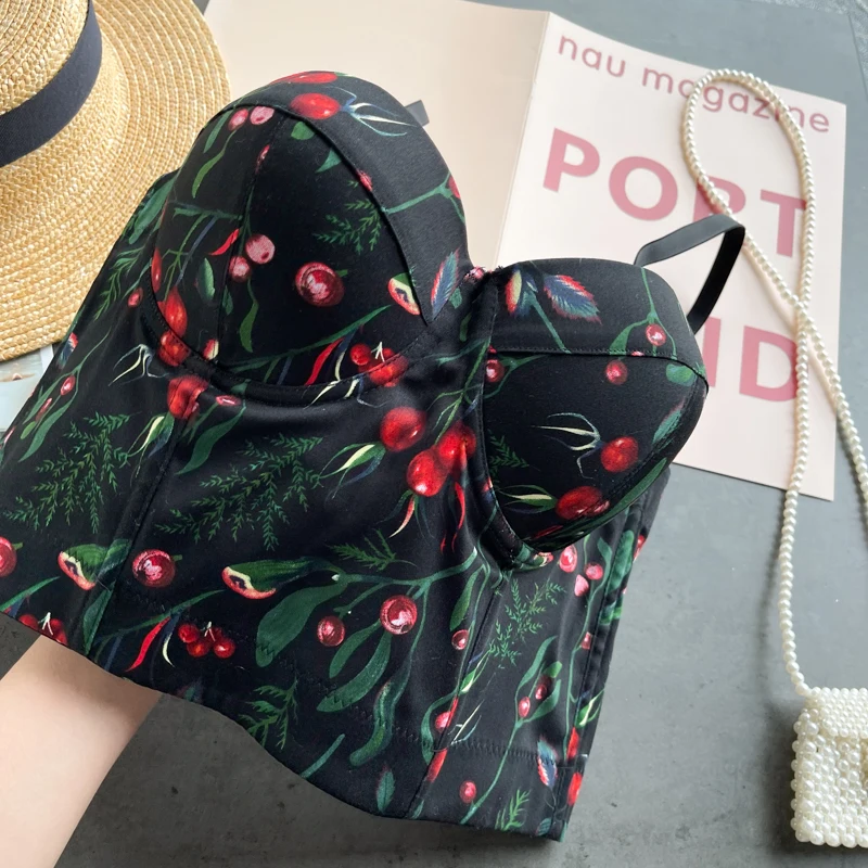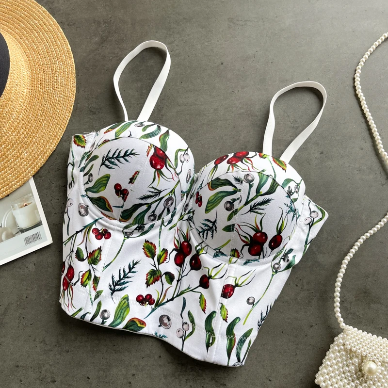 Женский топ без рукавов с принтом, короткий корсет-бюстье R835