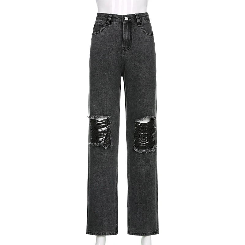 Джинсы женские рваные с завышенной талией, модные мешковатые брюки из денима в винтажном стиле Харадзюку, в стиле ретро