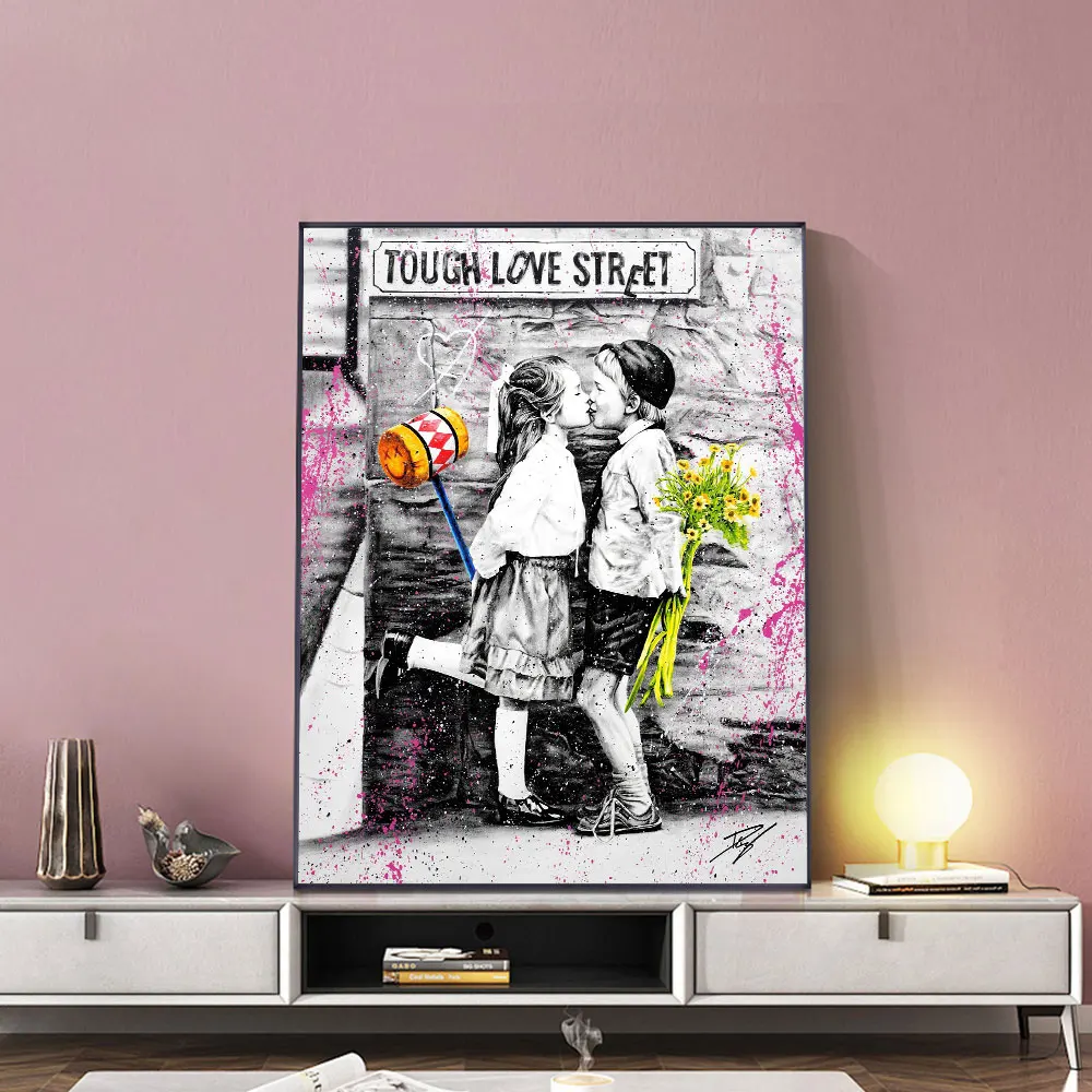 Современное граффити блеск мальчик и девочка Холст Искусство стены картина для гостиной домашний Декор без рамки