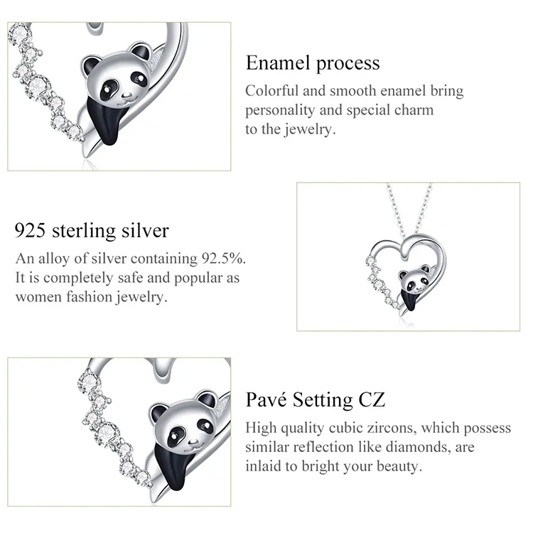 Детская колье с изображением панды bamoer из стерлингового серебра 100% пробы, циркониевая эмаль, милые животные, очаровательные звенья цепочки для женщин, Подарочные ювелирные изделия SCN453