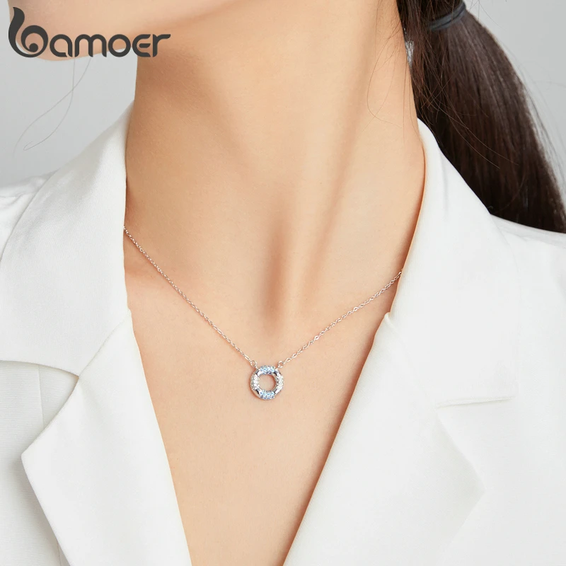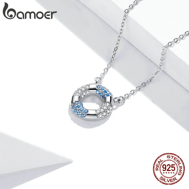 Модное кольцо для плавания bamoer, 100% 925 пробы, серебристо-голубое кольцо, очаровательное Спортивное ожерелье, подарочное Ювелирное Украшение для девушки SCN447