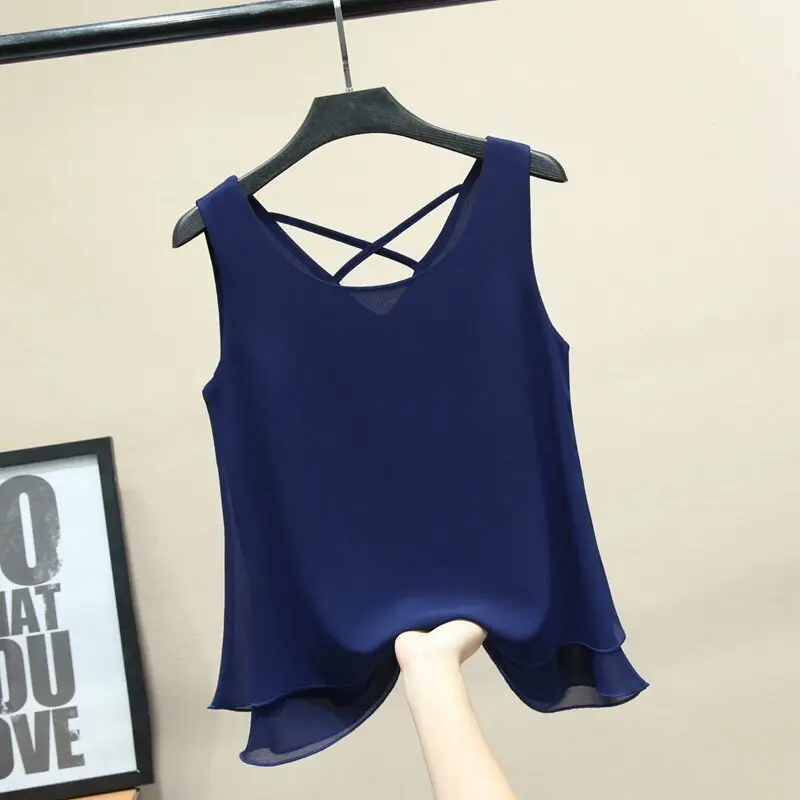Модная новинка 2020, женская блузка без рукавов, летняя шифоновая р...