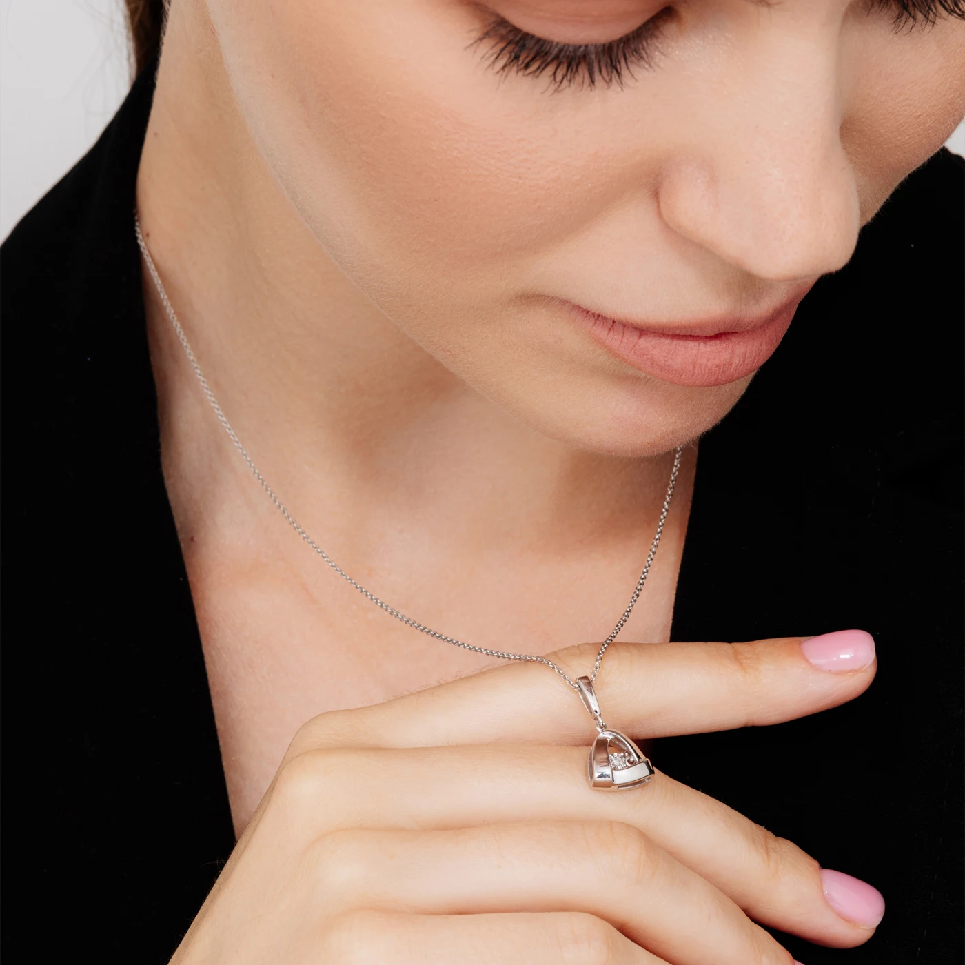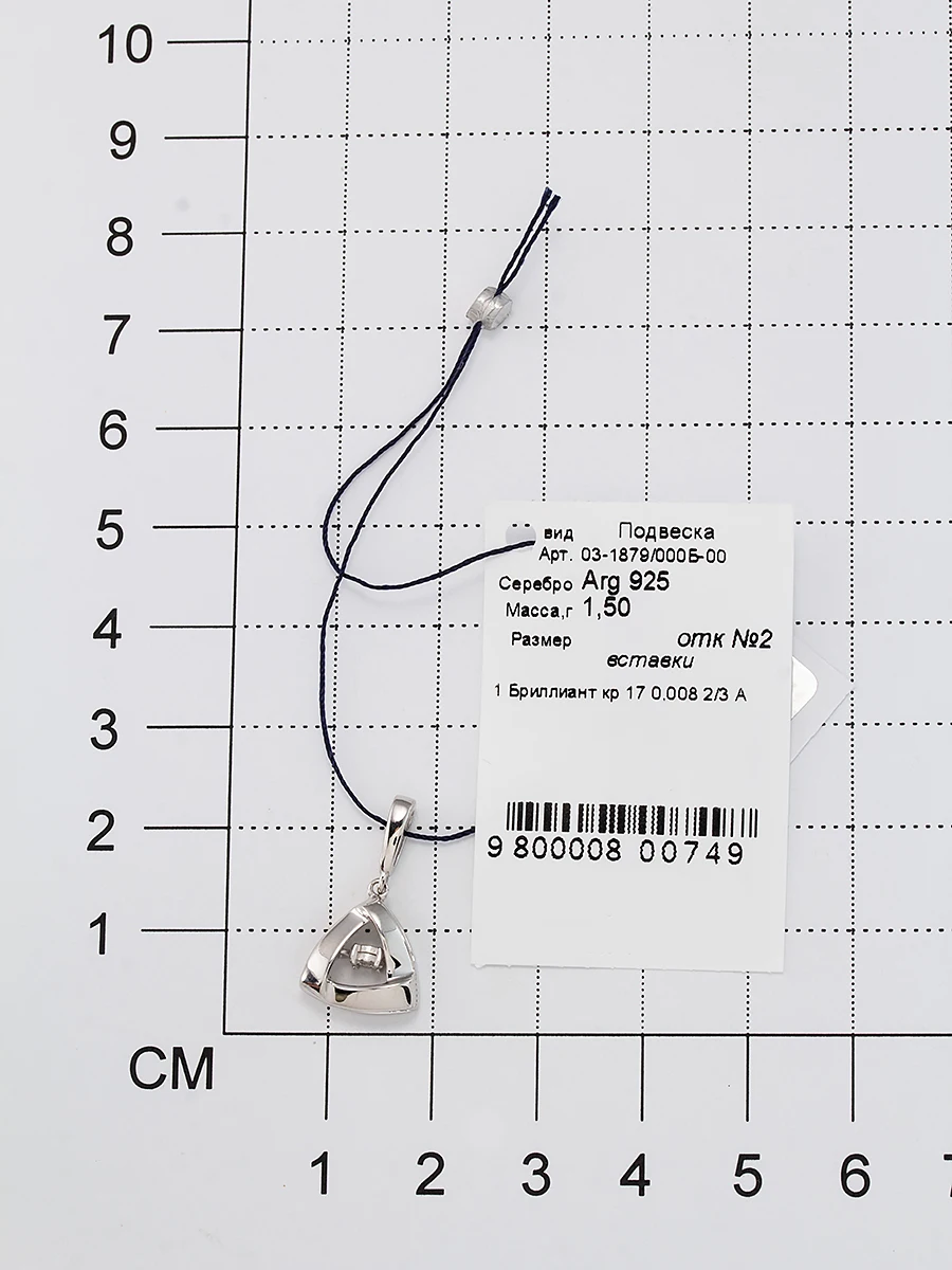 Подвеска из серебра с бриллиантами. Вставка: 1 Бриллиант Круг 17 120-200 2/3А, карат. вес: 0,008. Высота изделия: 21,3 мм. Ширина изделия: 11,4 мм