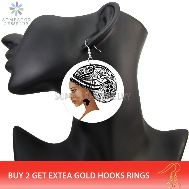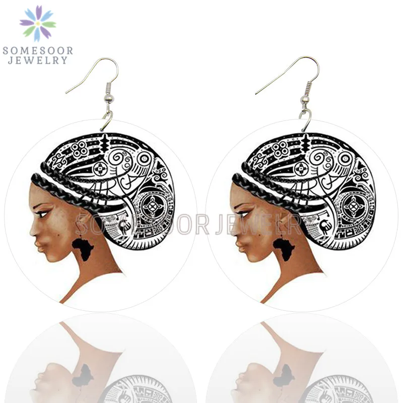 SOMESOOR лазерная гравировка афро деревянные висячие серьги Африкан...