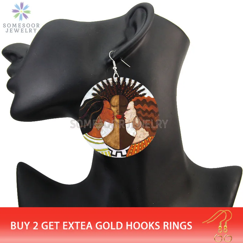 SOMESOOR афро меланин натуральные волосы деревянные висячие серьги ...