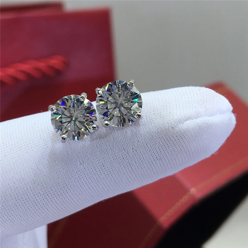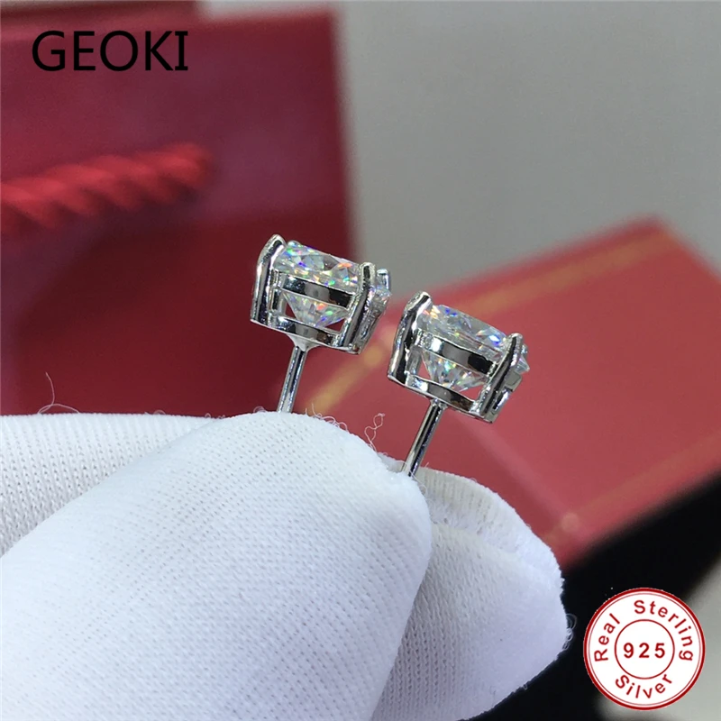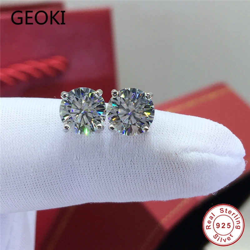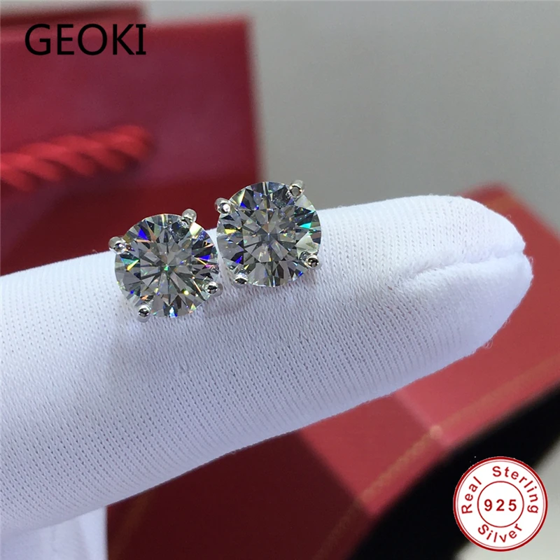 Серьги Geoki VVS1 из серебра 925 пробы с бриллиантами 2 карата, круглые, идеальная огранка, серьги-гвоздики с муассанитом, ювелирные изделия