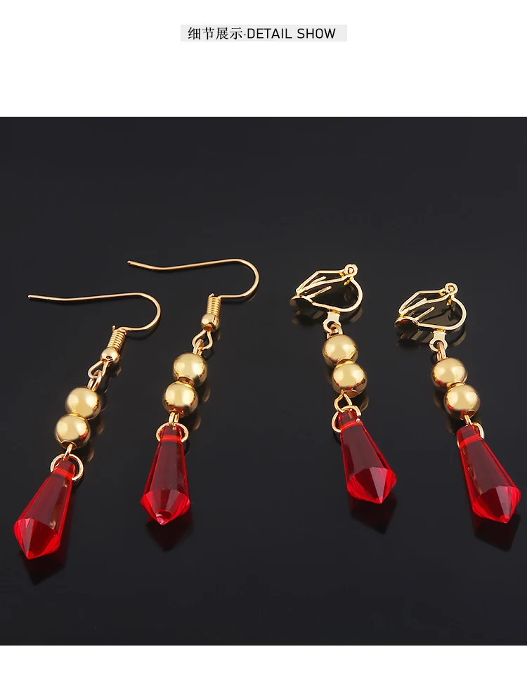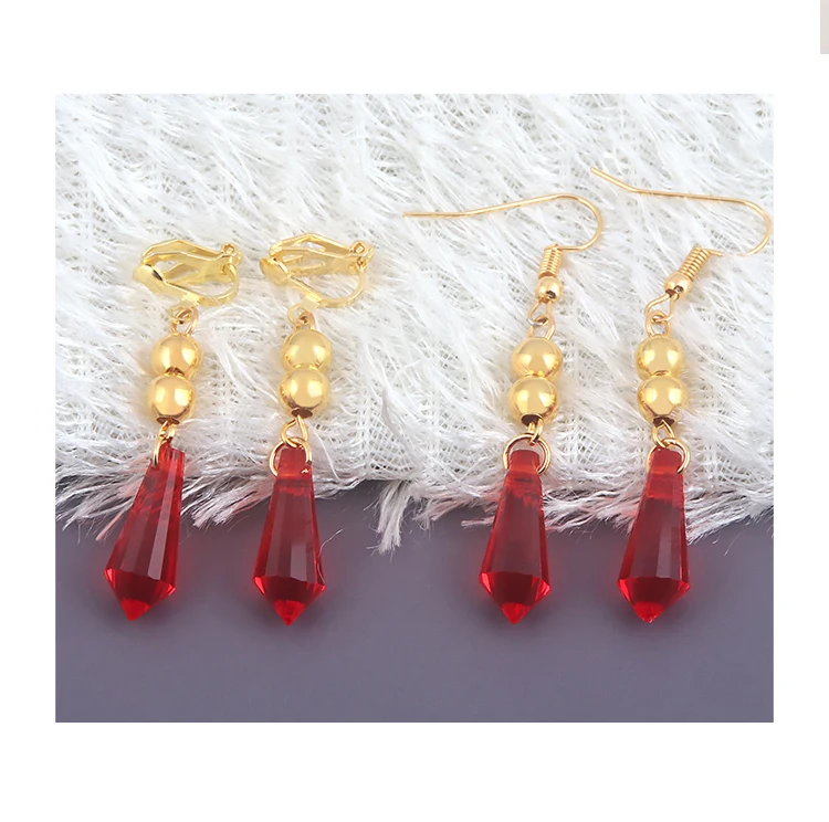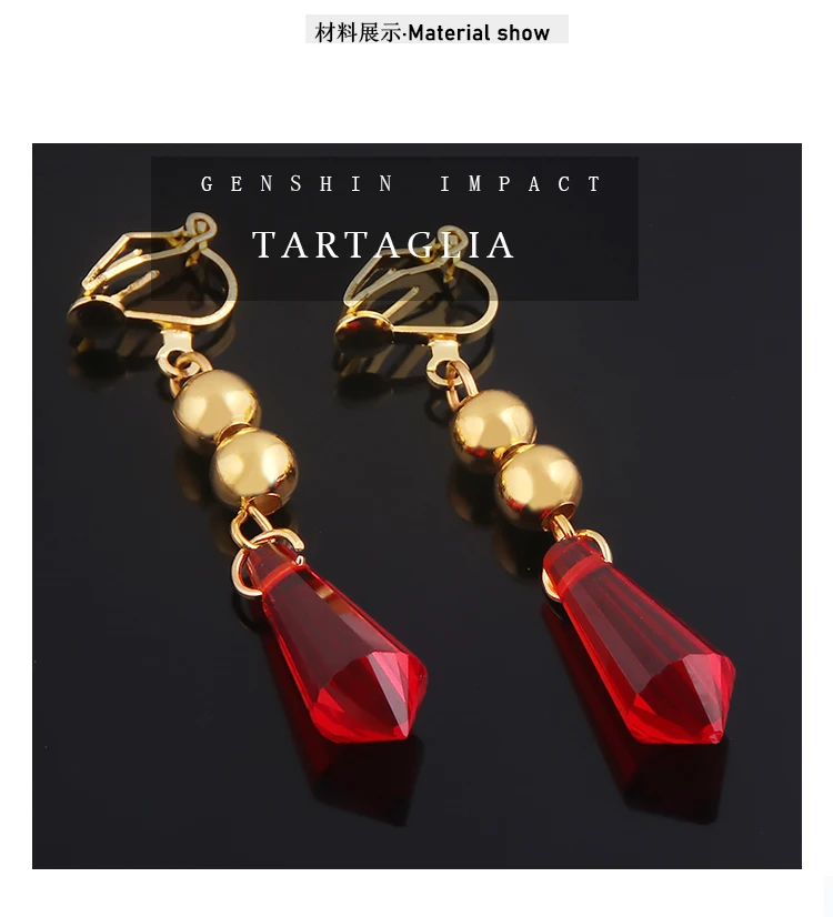 Genshin Impact тарталья Косплей красные серьги клипсы кулон ювелирн...