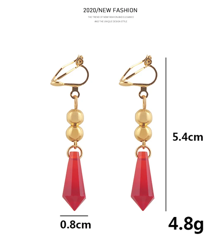 Серьги-клипсы с красными кристаллами Game Genshin Impact для женщин...
