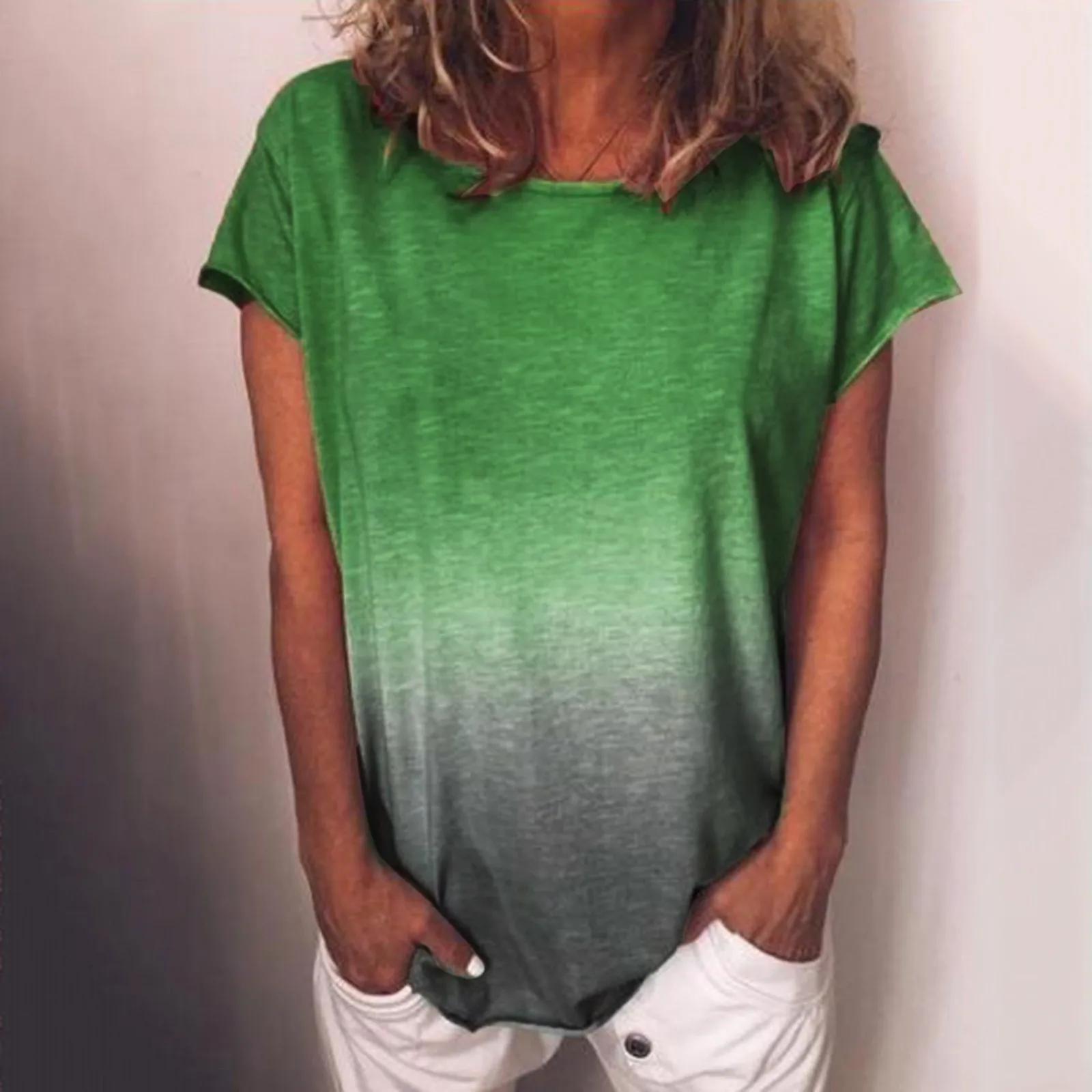 Женская Повседневная футболка с коротким рукавом градиентного цвета, туника, блузка, топы