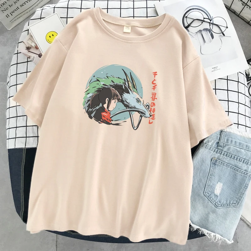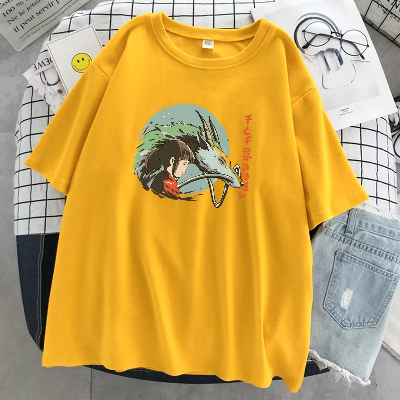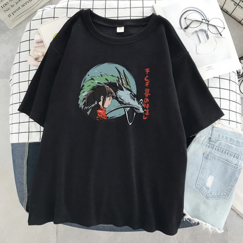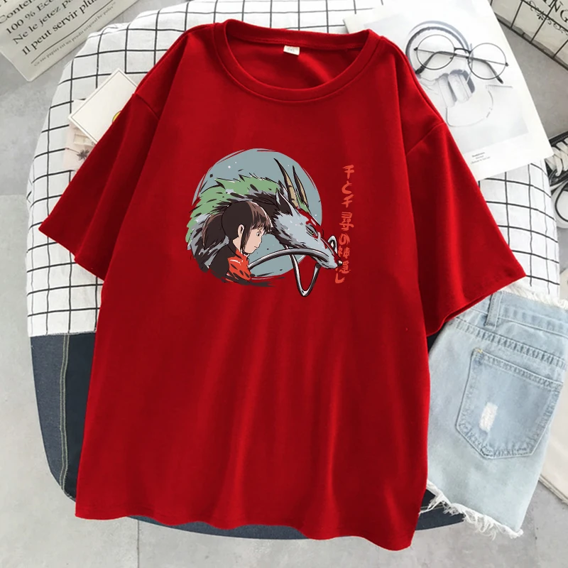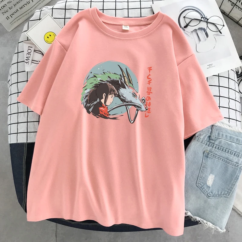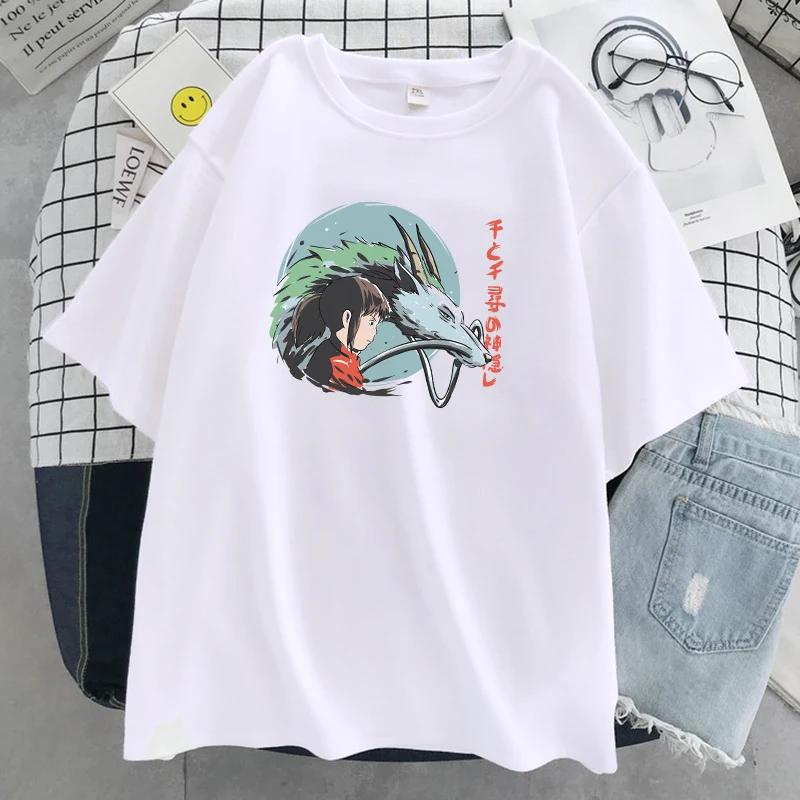 Унесенные призраками Япония футболка с принтом аниме женские свободные футболки с круглым вырезом Мультфильмы модная одежда уличные мягкие женские футболки