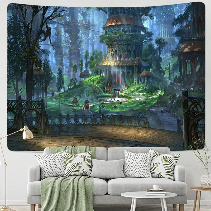 Психоделические фантазия лесной жизни гобелен с изображением деревьев Пейзаж Настенный Гобелен Декор в гостиную Magic украшение дома