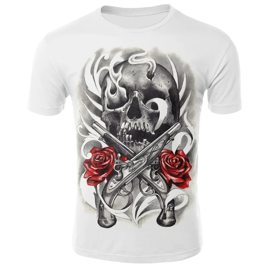 Футболка с 3D-принтом черепа пистолета розы однотонная серия Мужская и женская детская повседневная футболка с коротким рукавом Каратель
