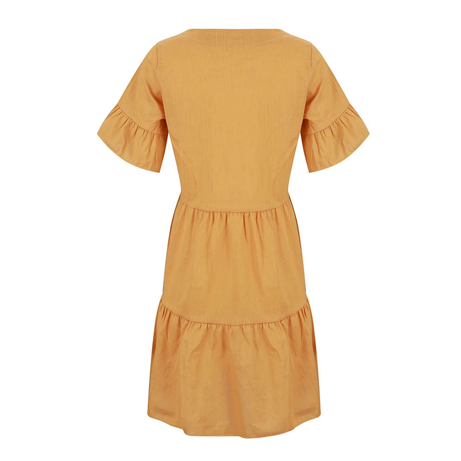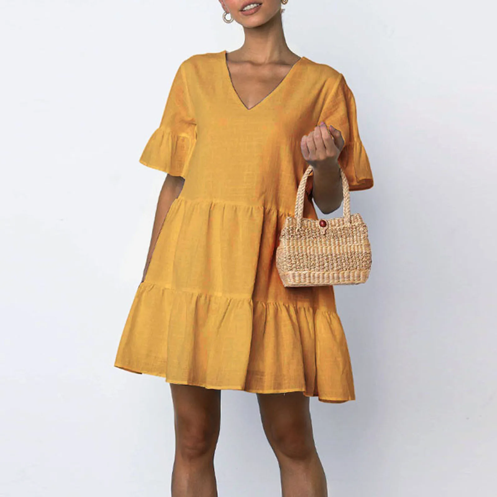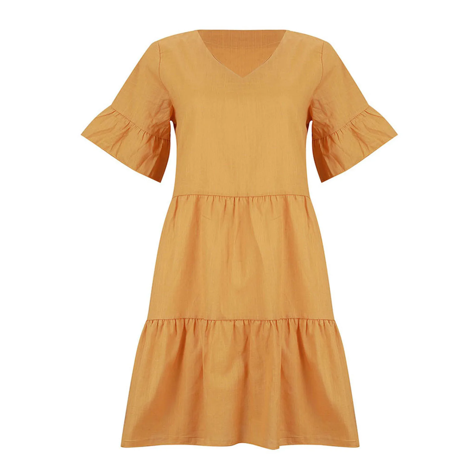 Платья с оборками, женское повседневное однотонное свободное платье...