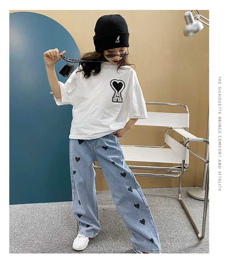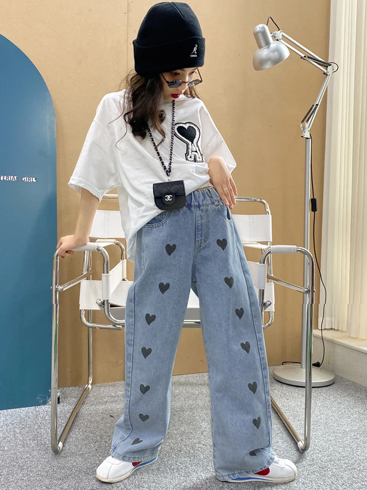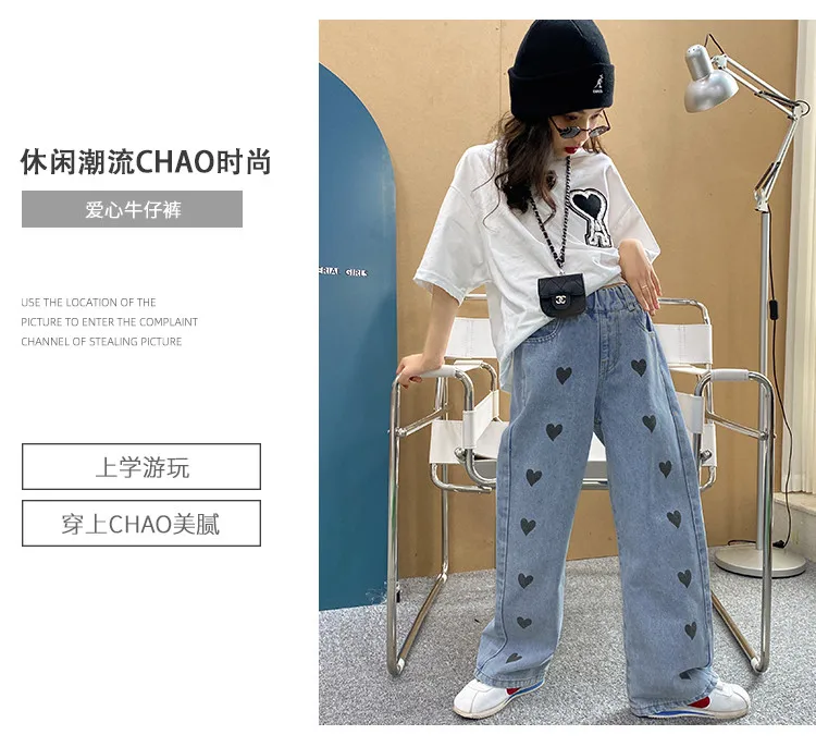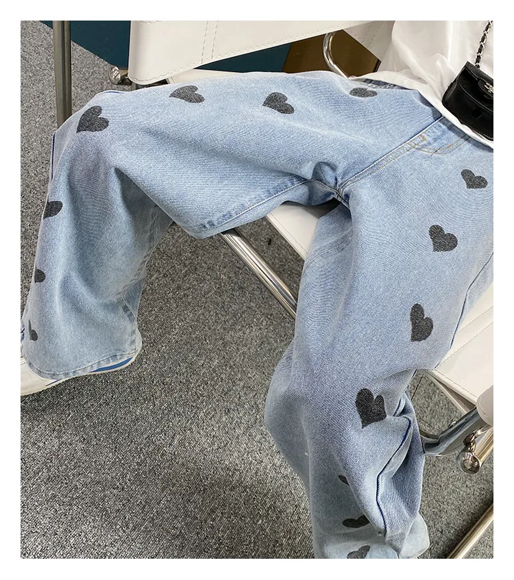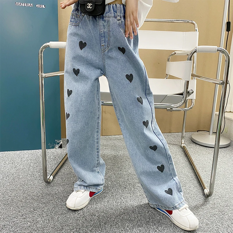 Детские джинсы с принтом любовь для девочек 8-10 лет; Коллекция 2021 года; Сезон весна; Модные детские штаны в одинаковом стиле со звездами