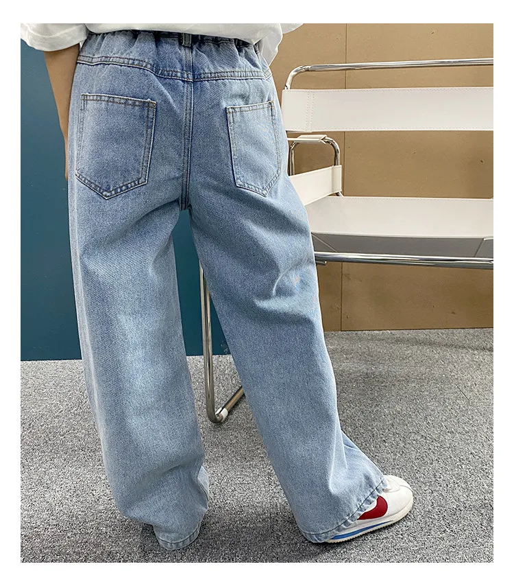Джинсы с широкими штанинами для девочек от 10 до 12 лет, осенние св...