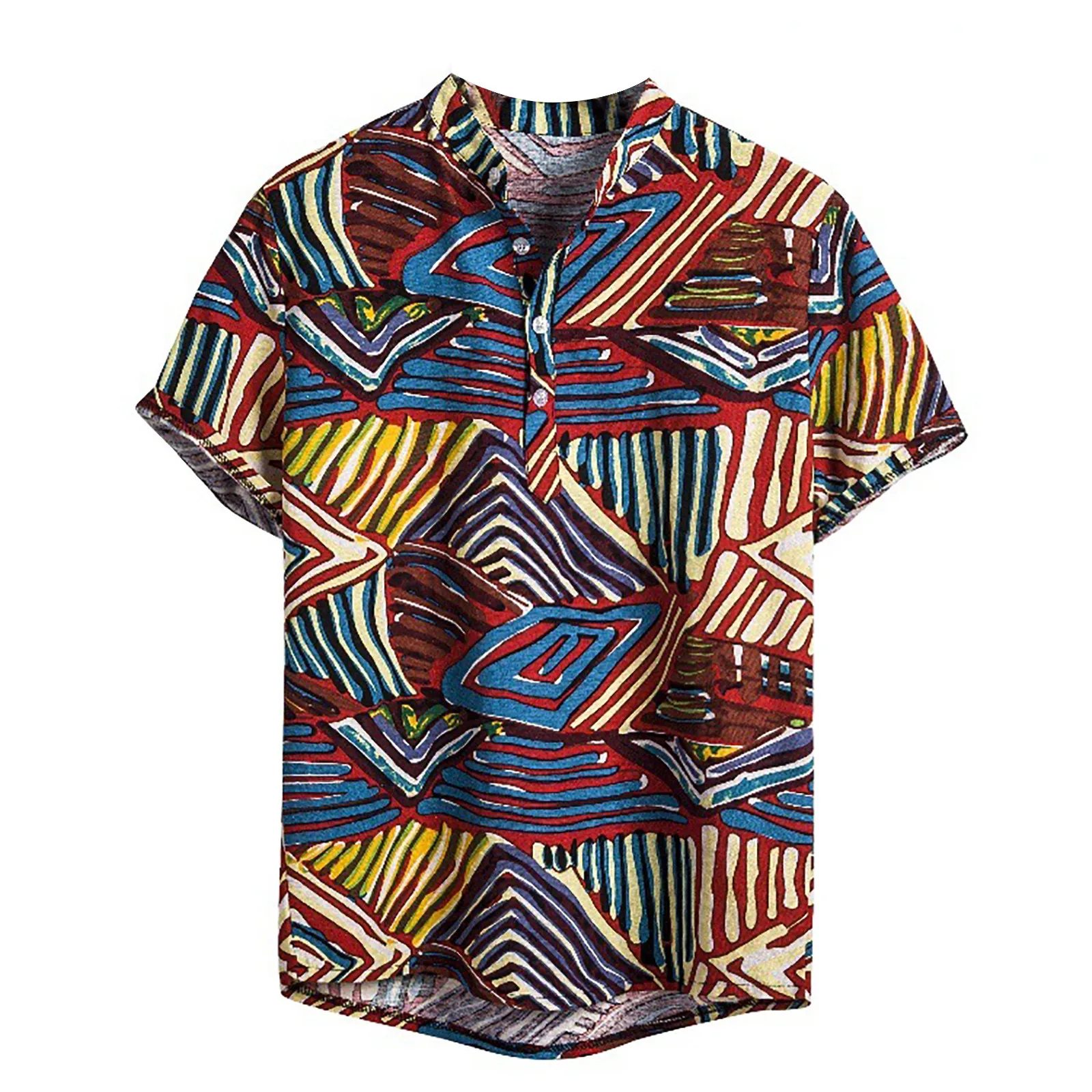 Рубашка Мужская винтажная в этническом стиле, кардиган с коротким рукавом, платье-водолазка, рубашка, лето