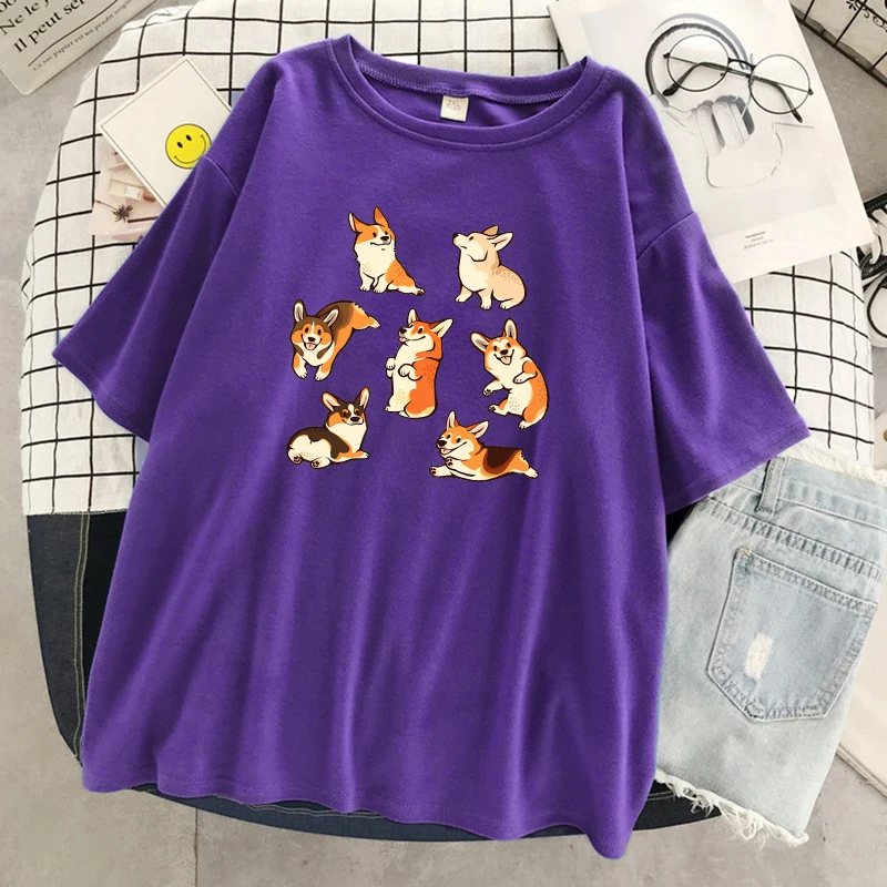 7 корги Мультфильмы Стиль рубашка с принтом Харадзюку женские удобные мягкие футболки летняя новая одежда хип-хоп свободные женские футболки