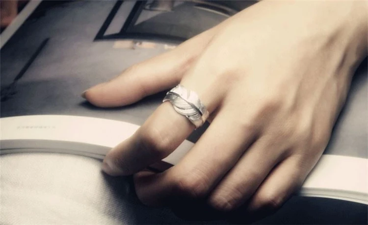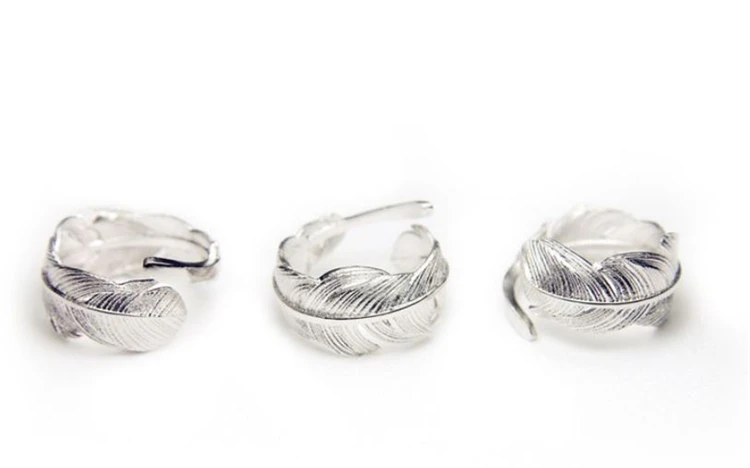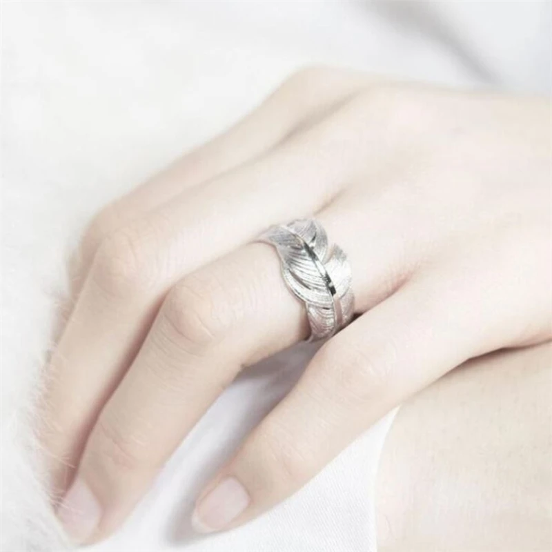 Женское кольцо с перьями и листьями, серебристого цвета