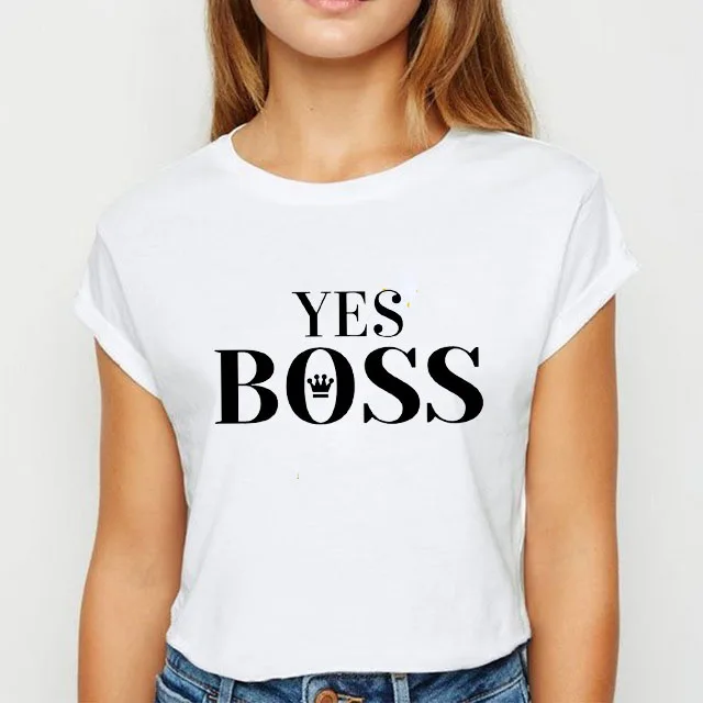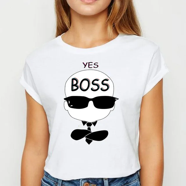 Да, босс Ietters простой Стиль повседневная женская футболка с о-образным вырезом с коротким рукавом футболка женский Harajuku 90s эстетическое футболки, топы
