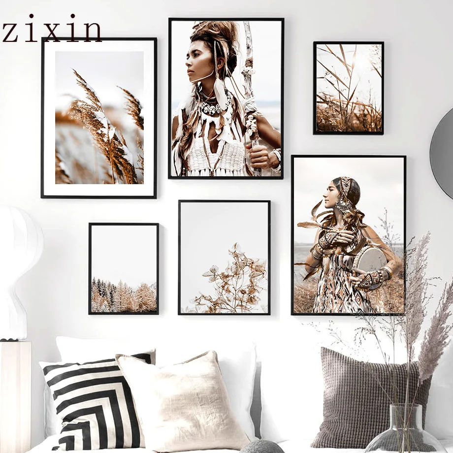 Настенная Картина на холсте осенние растения цветы хлопковая женщин...