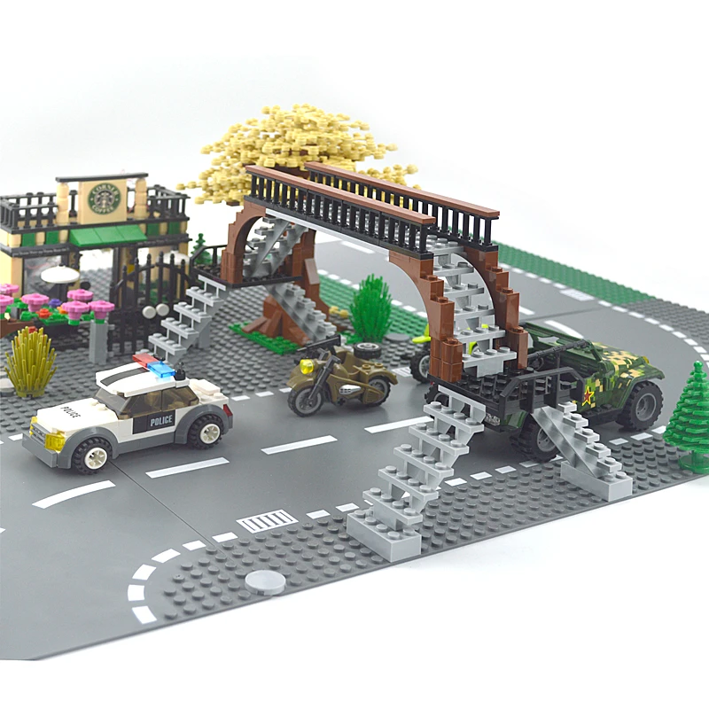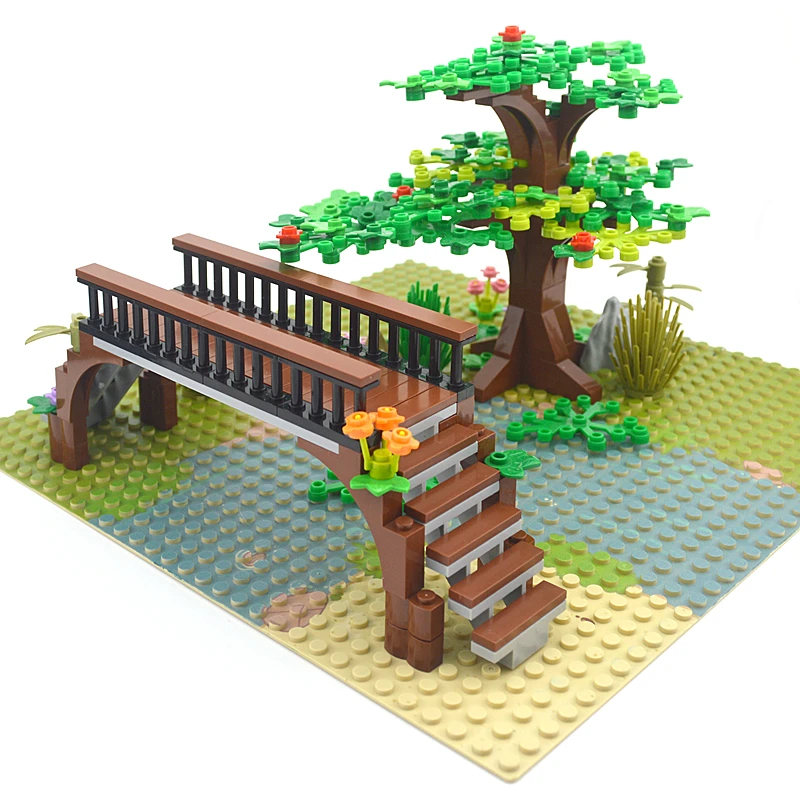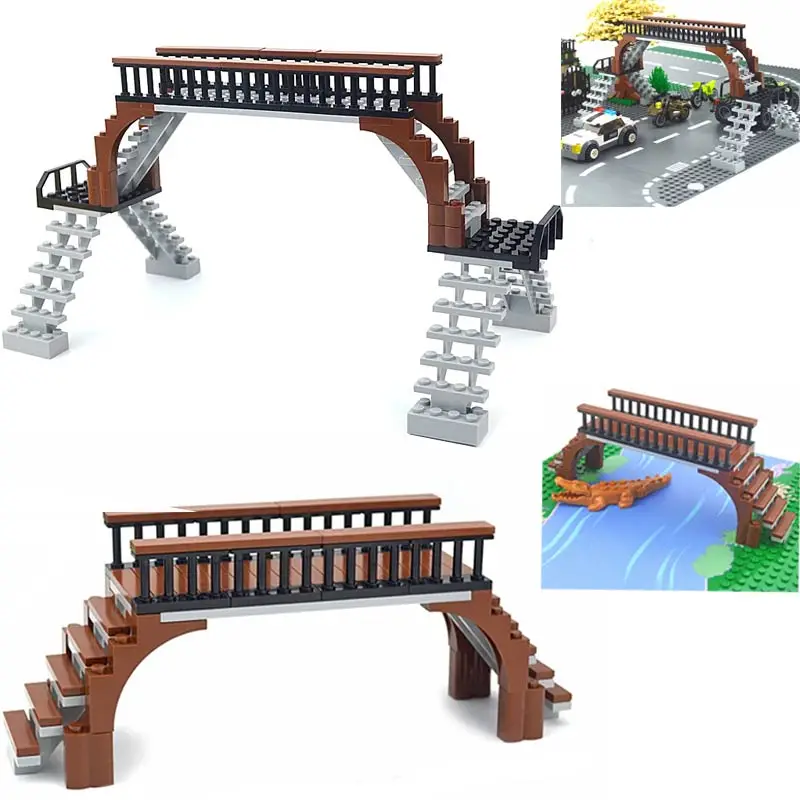 Конструктор пешеходный мост, уличные аксессуары, лестницы, заборы, кирпичи, поезд, станция, мост, железная дорога, обучающие игрушки