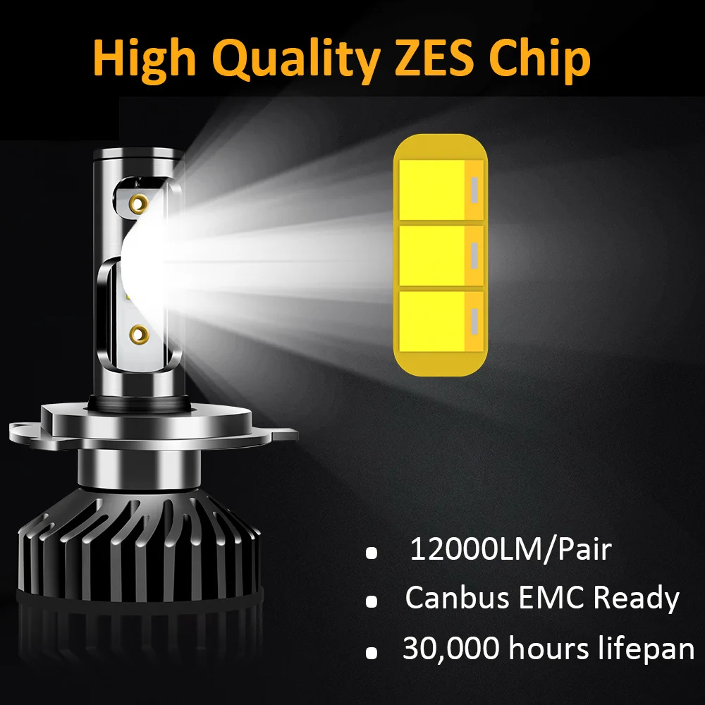 Дальний/ближний свет (H4) имеет 12 шт. чипов ZES, один луч (H1,H3 ,9005/HB3, 9006/HB4, H7, H8/H9/H11) 6 шт. чипов ZES