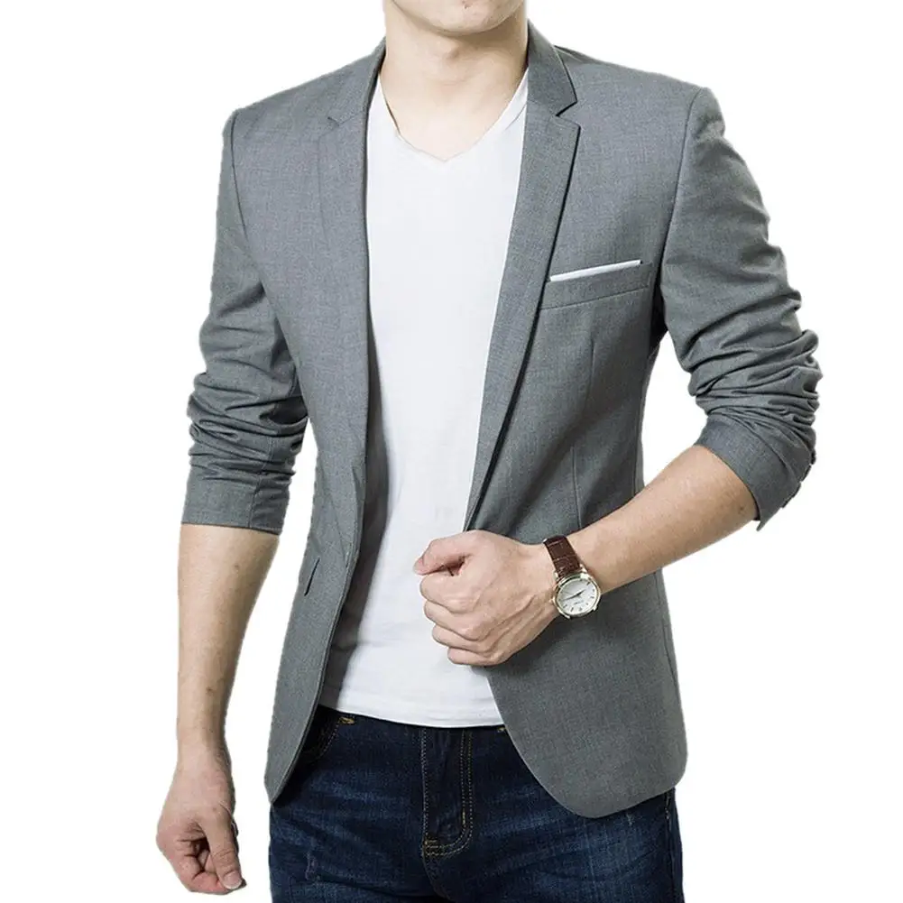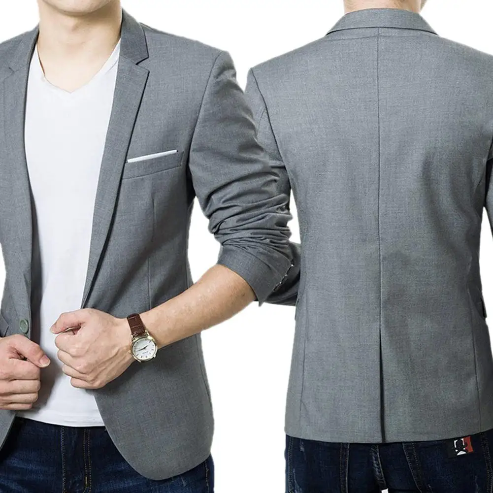 Мужской деловой костюм, облегающий официальный костюм, жилет на одной пуговице, отворот, длинный рукав, карманы, топ, Мужской Блейзер, костюм