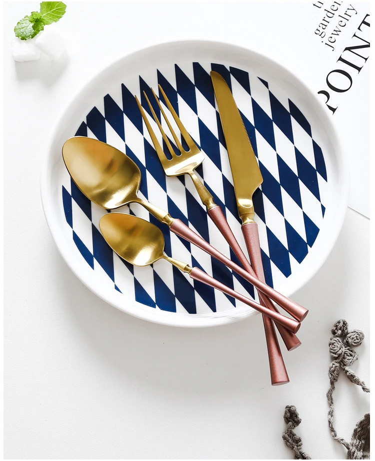 Набор столовых приборов, золотой кухонный набор из нержавеющей стал...