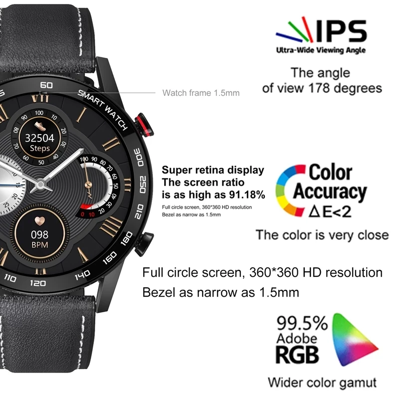 Смарт-часы DT95 мужские с поддержкой Bluetooth и пульсометром, 360*360