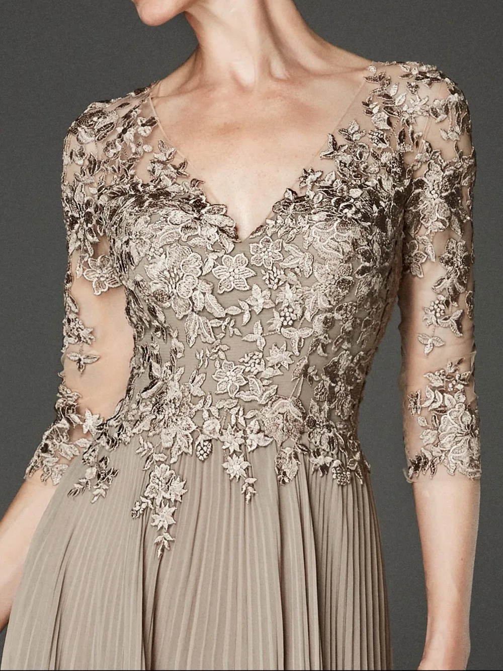 Женское ТРАПЕЦИЕВИДНОЕ ПЛАТЬЕ цвета шампанского, Длинное Элегантное плиссированное платье с рукавом до локтя и V-образным вырезом для свадебной вечеринки, 2021