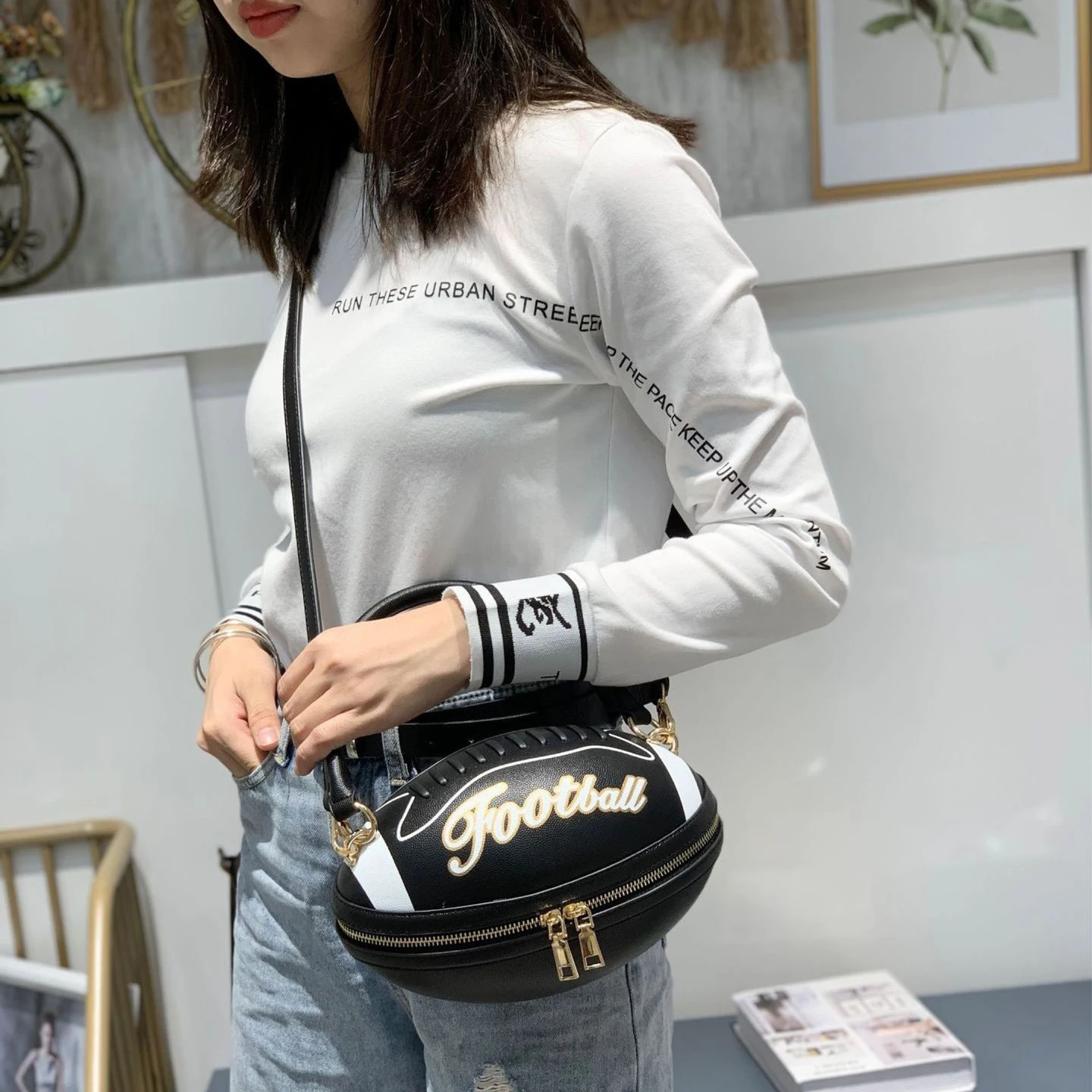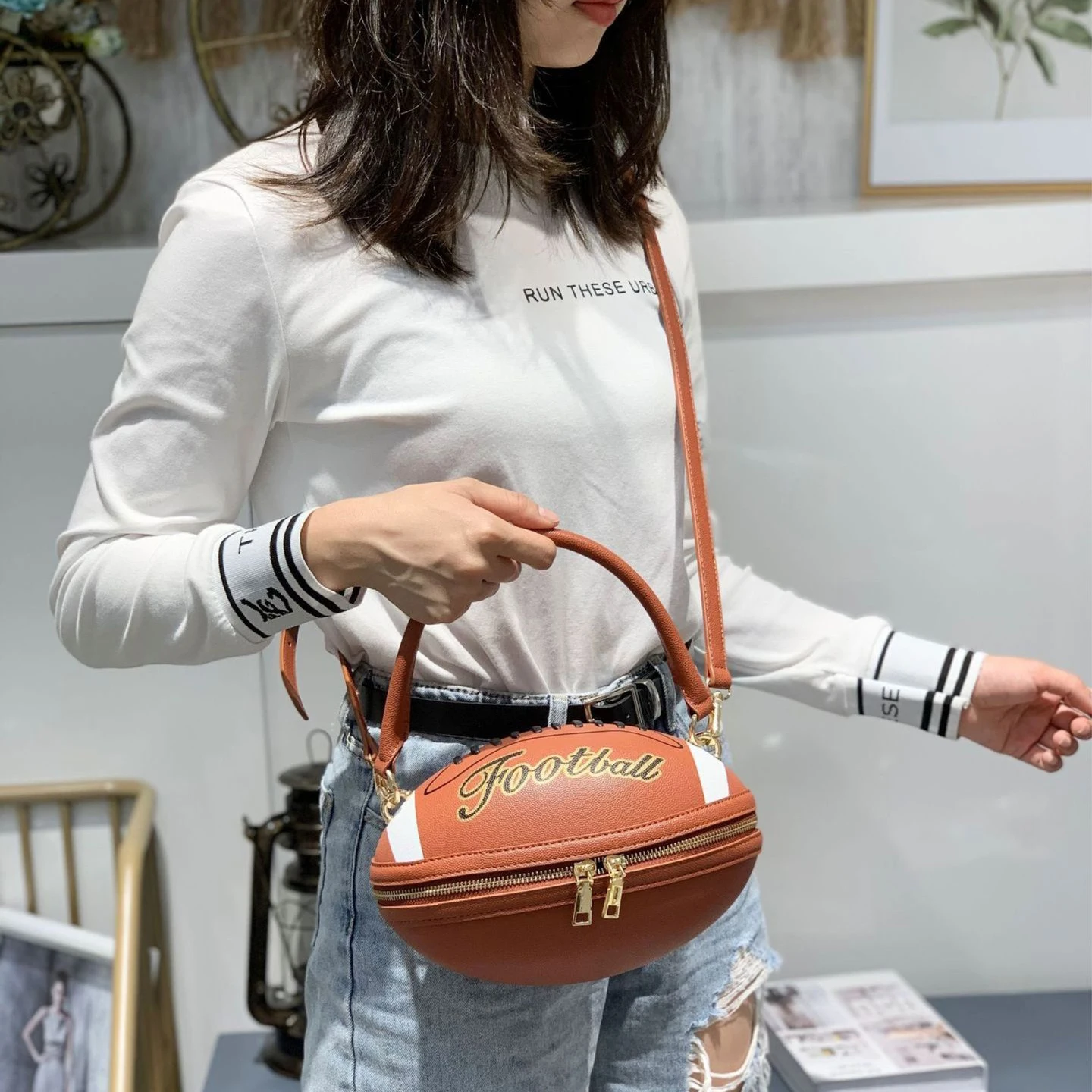 Сумка-кроссбоди женская, кожаная, в футбольном стиле, 2021