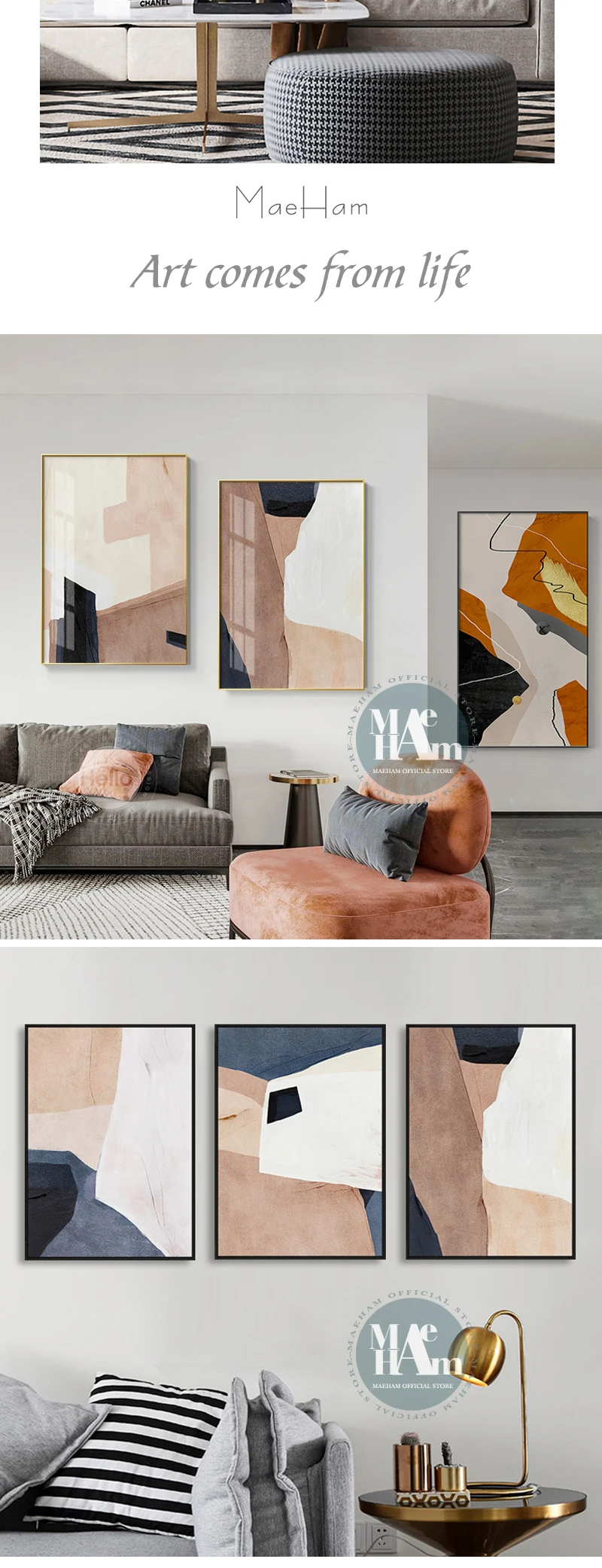 Абстрактная Геометрическая Печать на холсте с цветными блоками, ретро картина маслом, текстурный постер, настенные художественные картины, декор для гостиной
