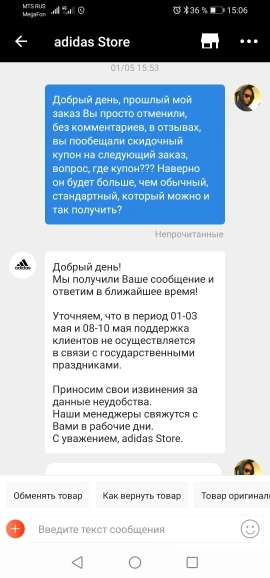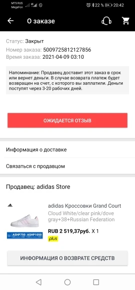 Продавец отменил заказ, при этом ничего не написал, наверное слишком дёшево оказалось, что я купил кроссовки... а то скидки, покупайте, вот купоны, а нет все оказалось виртуально, только жаль потраченного времени и отвлечения денег на движения туда сюда обратно, так что продавца категорически не рекомендую, что считает не нужным даже написать, что что-то у него не получается, вот такое отношение.