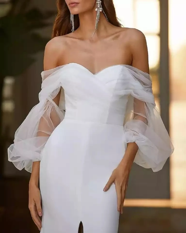 Свадебное платье для росписи, свадебное платье 2021 рукава фонарики