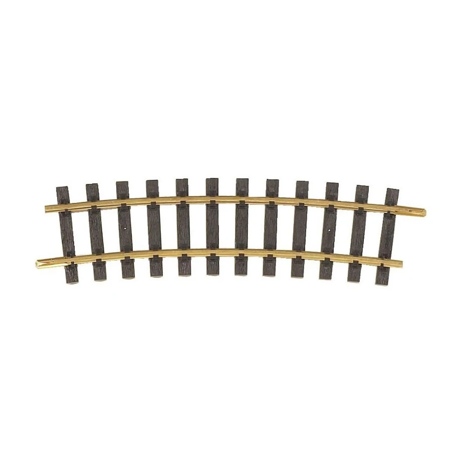 Модель PIKO 35215 — Радиусный рельс на шпальной решётке G-R5 15°, G. Рекомендуется для железнодорожных макетов в масштабе 1/22,5 G .Радиус 1243,08 мм / 15 °, 24 рельса образуют круг.Масштаб 1 22,5.
