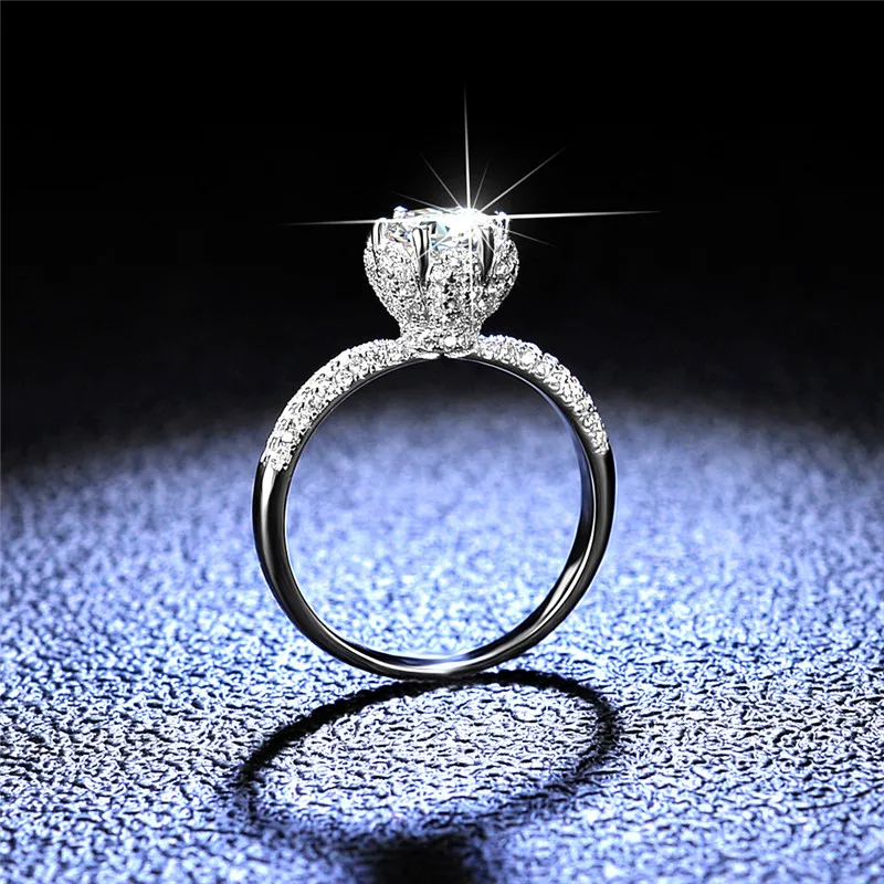 Кольцо в виде цветка с муассанитом, 1 карат, из серебра 925 пробы