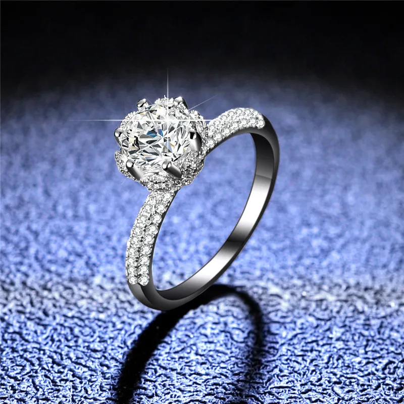 Кольцо с муассанитом женское из серебра 100% пробы, 1 карат, 6,5 мм
