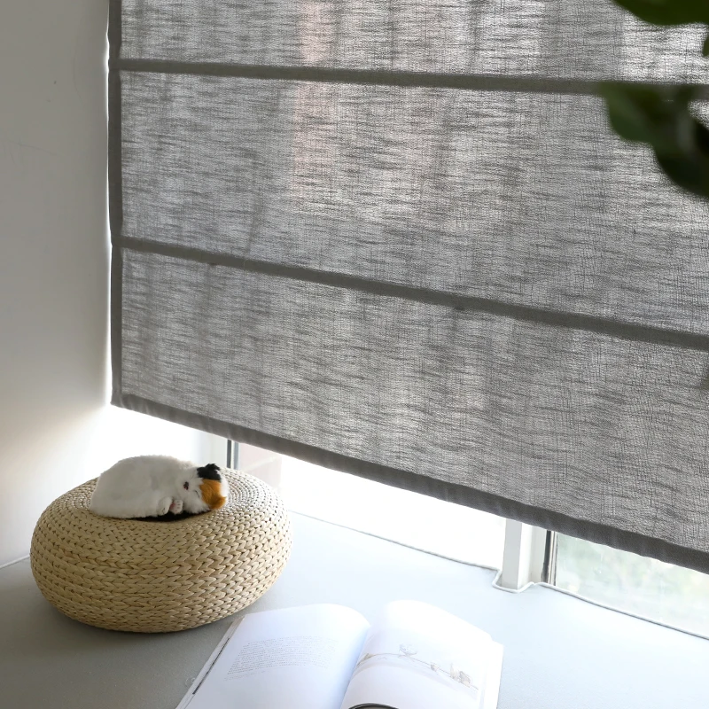 Плотные римские шторы из искусственного льна, римские жалюзи в японском стиле для гостиной, кухни, на заказ