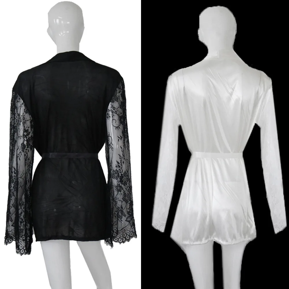 Горячее сексуальное нижнее белье, женское атласное кружевное черное кимоно, интимная одежда для сна, халат, сексуальное ночное платье, женское эротическое нижнее белье, пеньюар