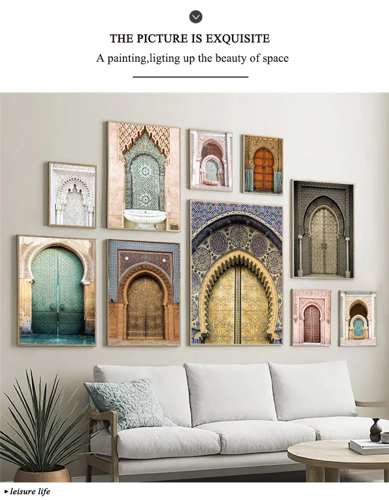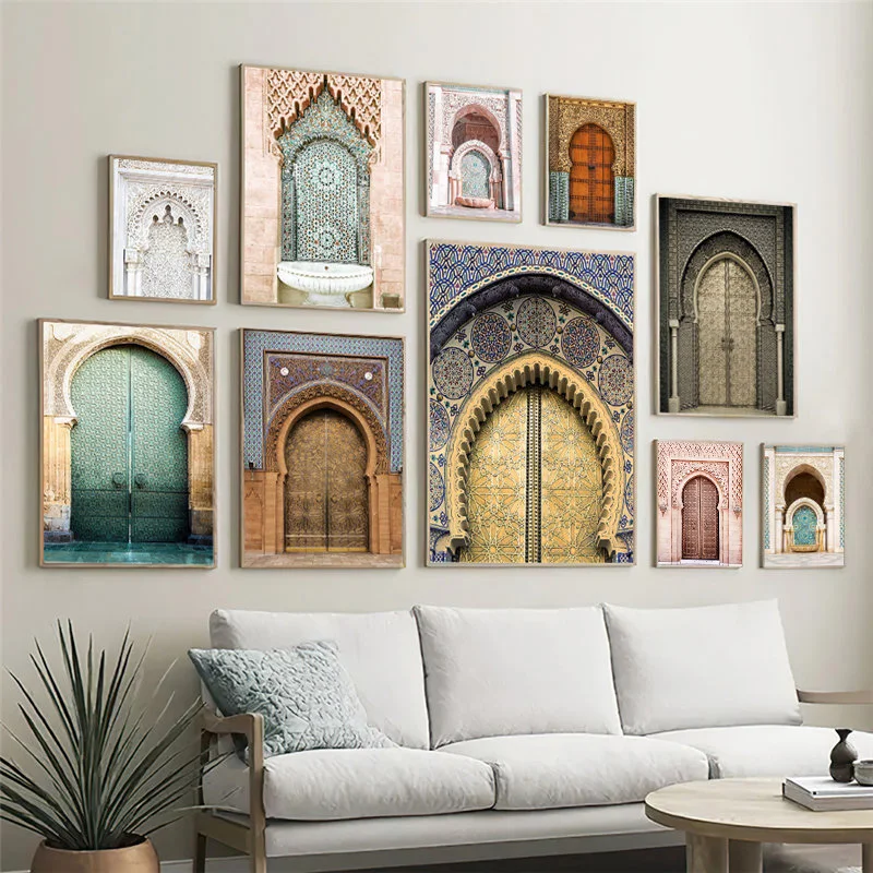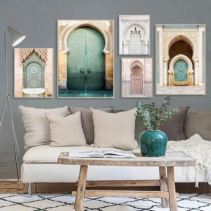 Скандинавские принты на холсте, мусульманская архитектура, постер, марокканская дверь, настенное искусство, винтажная живопись, мусульманские настенные картины, декор для гостиной