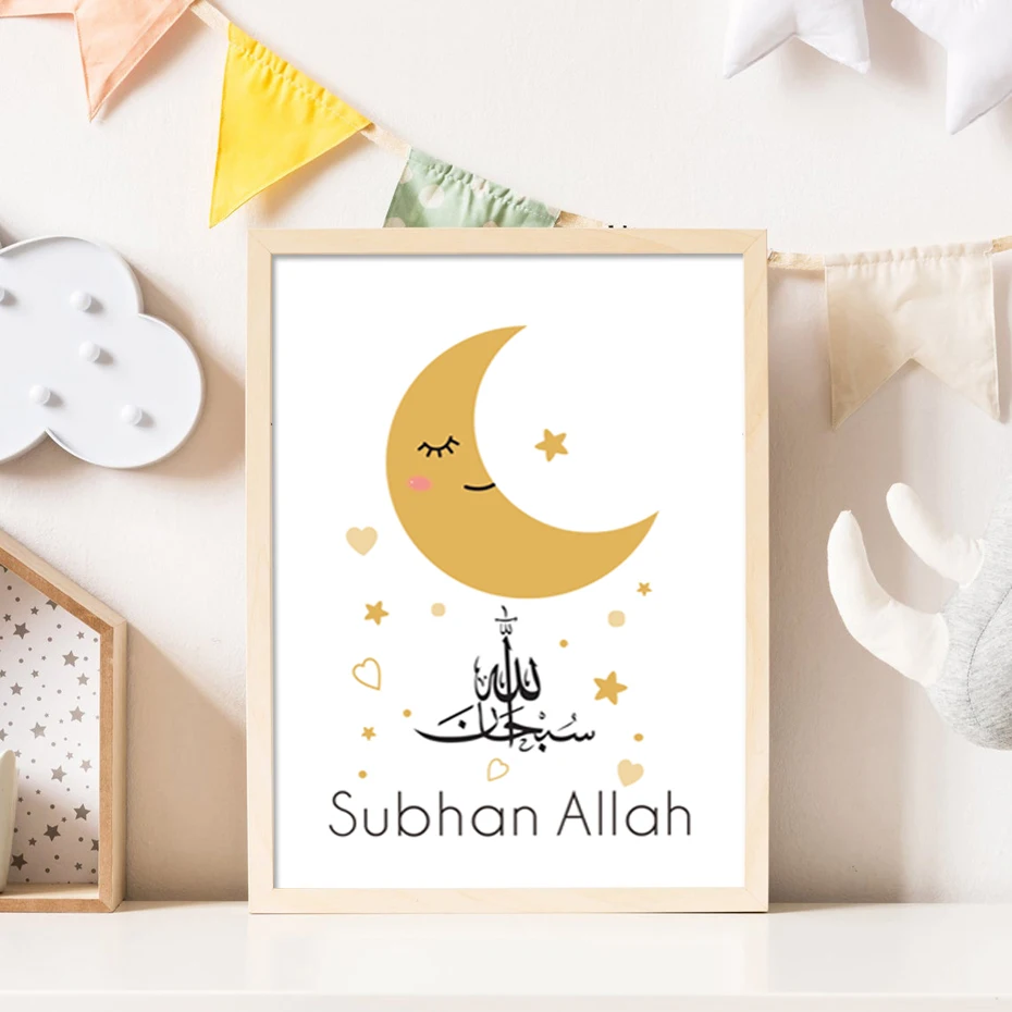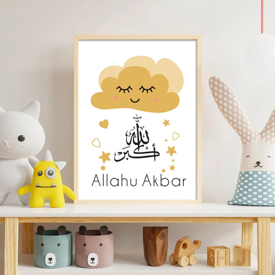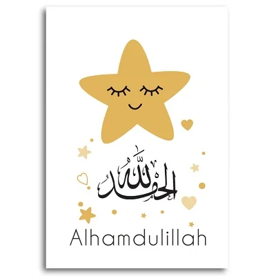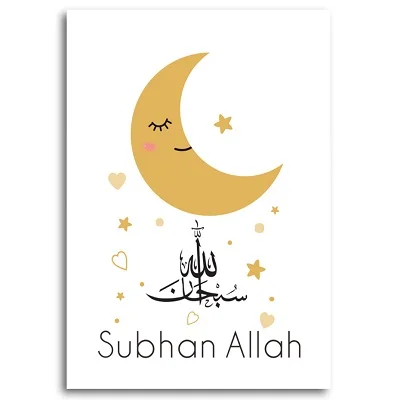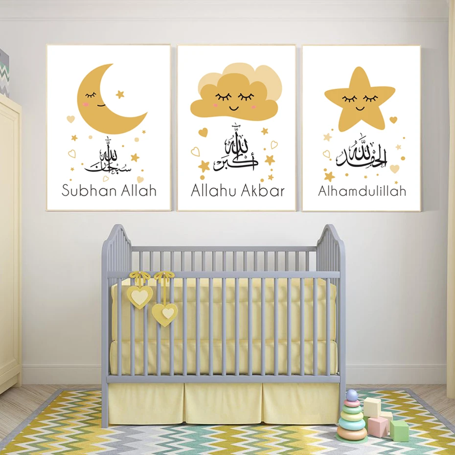 Современная Исламская желтая облако звезда Луна детская живопись на холсте художественные плакаты принты картины для девочек Детская комната украшение для дома