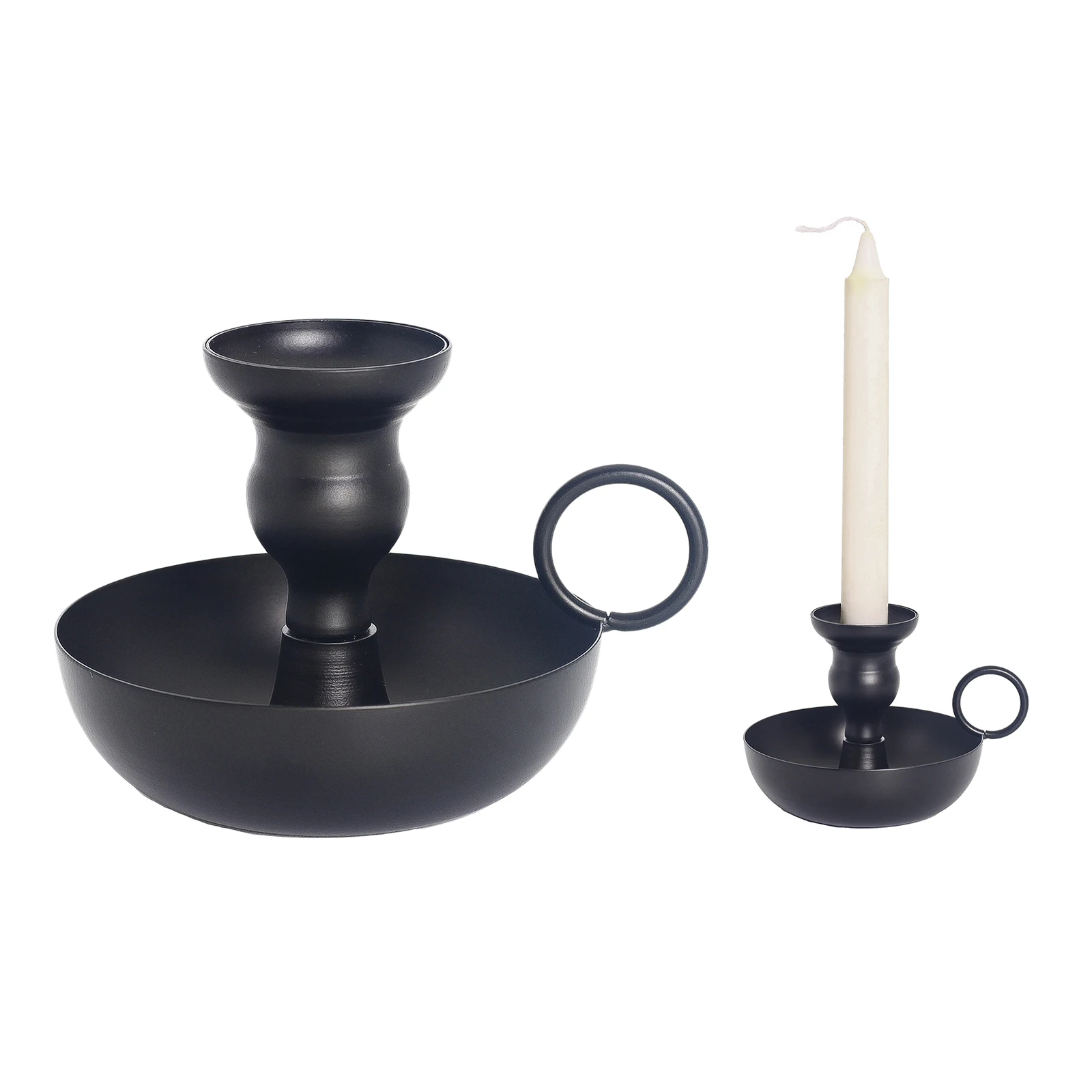 Конический подсвечник изготовлен из прочного чугуна, размер: 9,7x8, 2 см/3,81x3,23 дюймаРучная работа из кованого железа, матовая черная отделка для выпечки. Антикоррозийный, антикоррозийный, прочныйСовременный винтажный дизайн: ручка имеет круглое кольцо, подсвечник плавно переходит в центр.Круглое отверстие обеспечивает твердую поддержку свечей, идеально помещается в любой стандартный ПОДСВЕЧНИК или коническую свечу.Отлично подходит для ужина при свечах, гостиной, украшения на День Благодарения и т. д. привнесите ваш дом с более художественным вкусом.